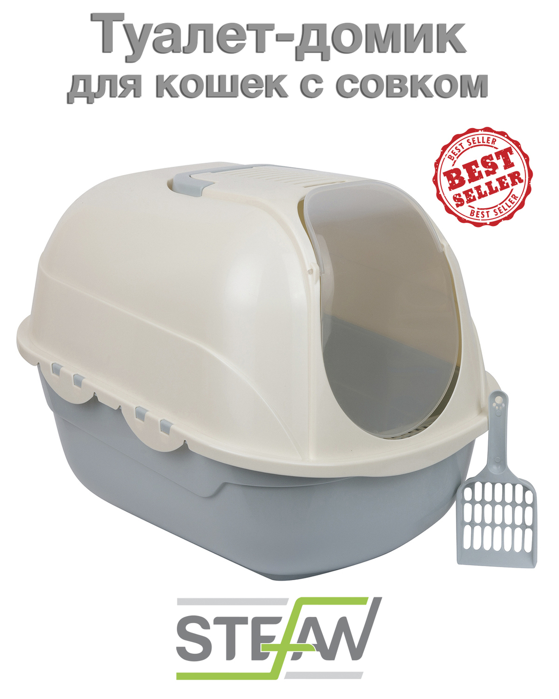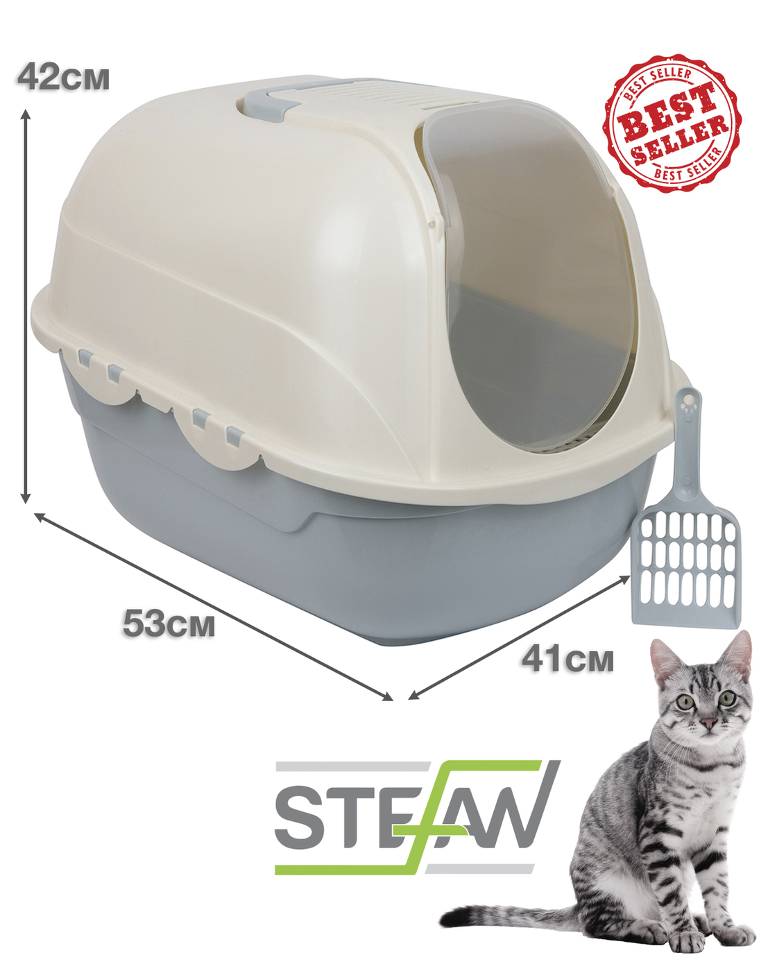Туалет-домик, лоток для кошек "STEFAN", совок в комплекте, размер 53х41х42 cм, серо-голубой, BP2535