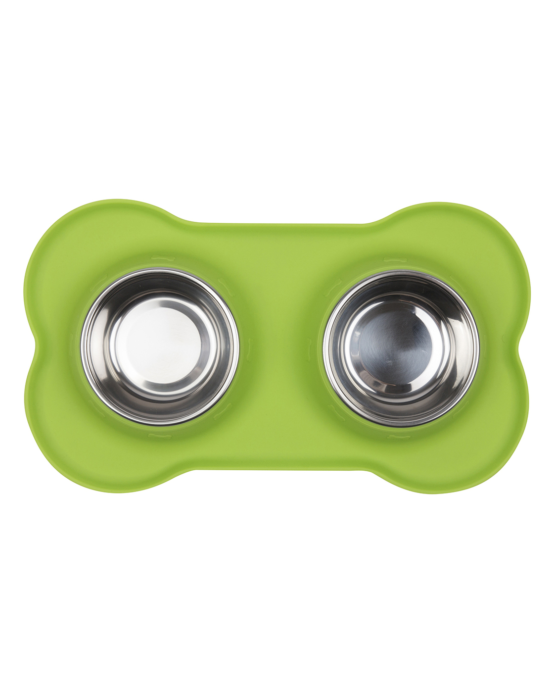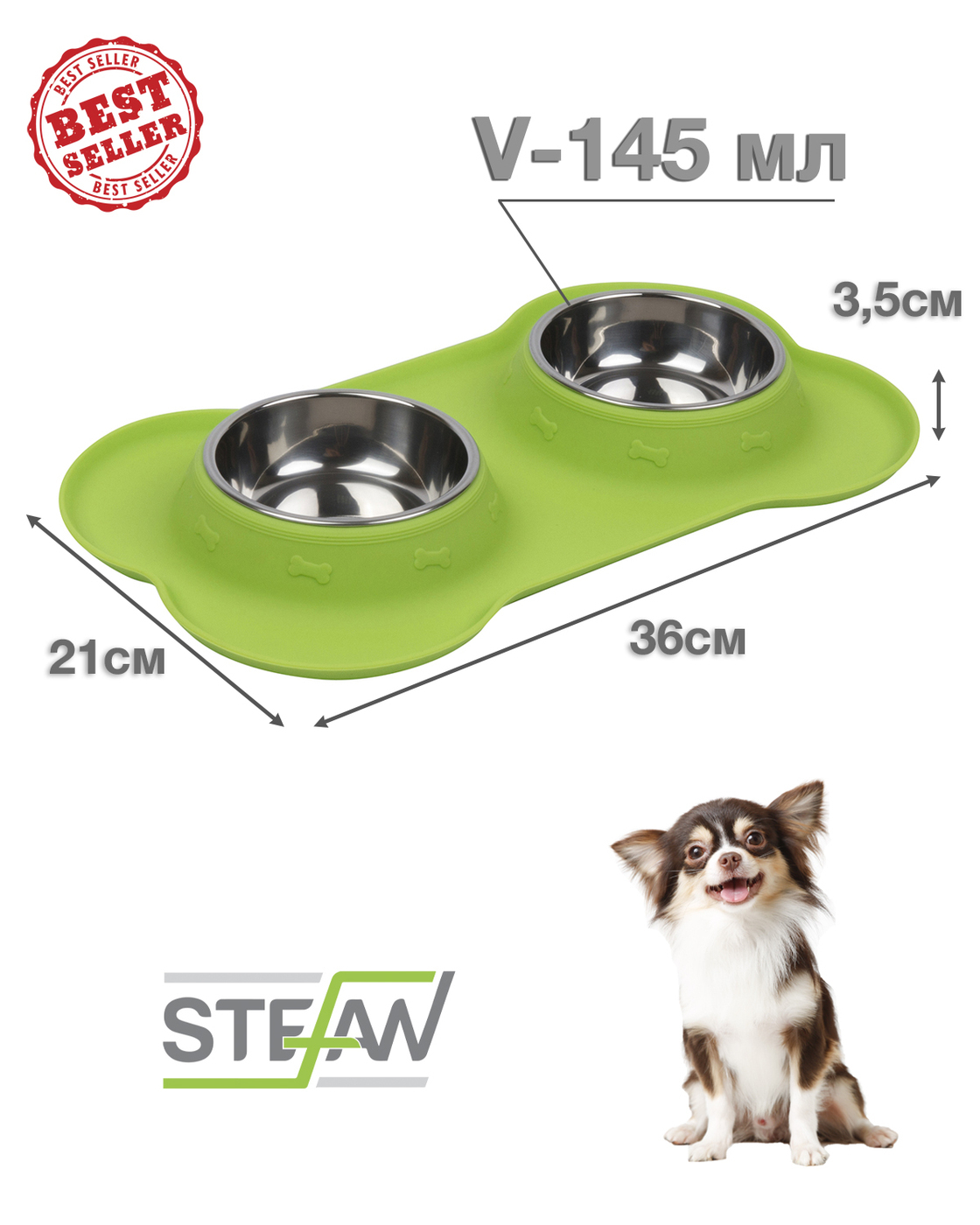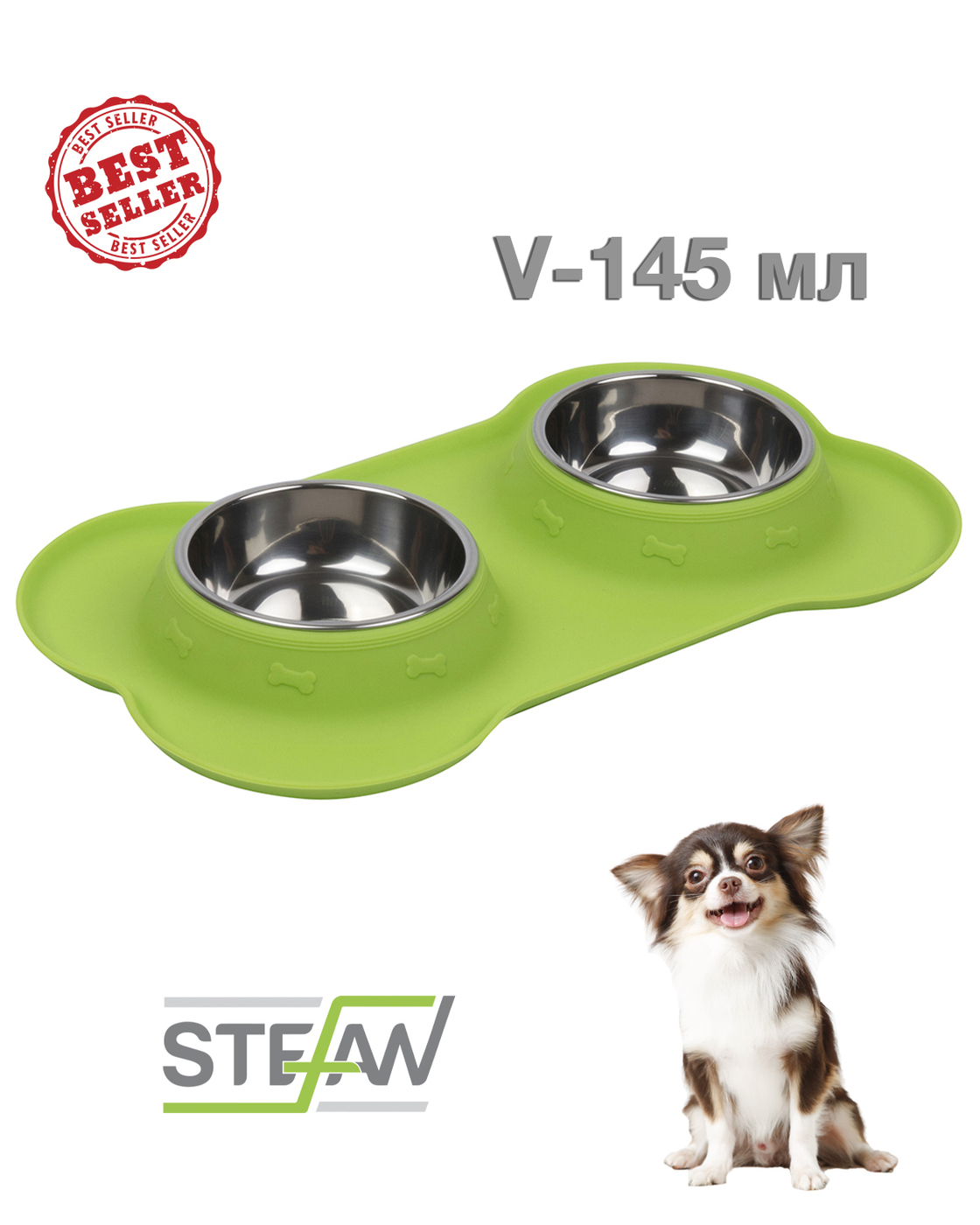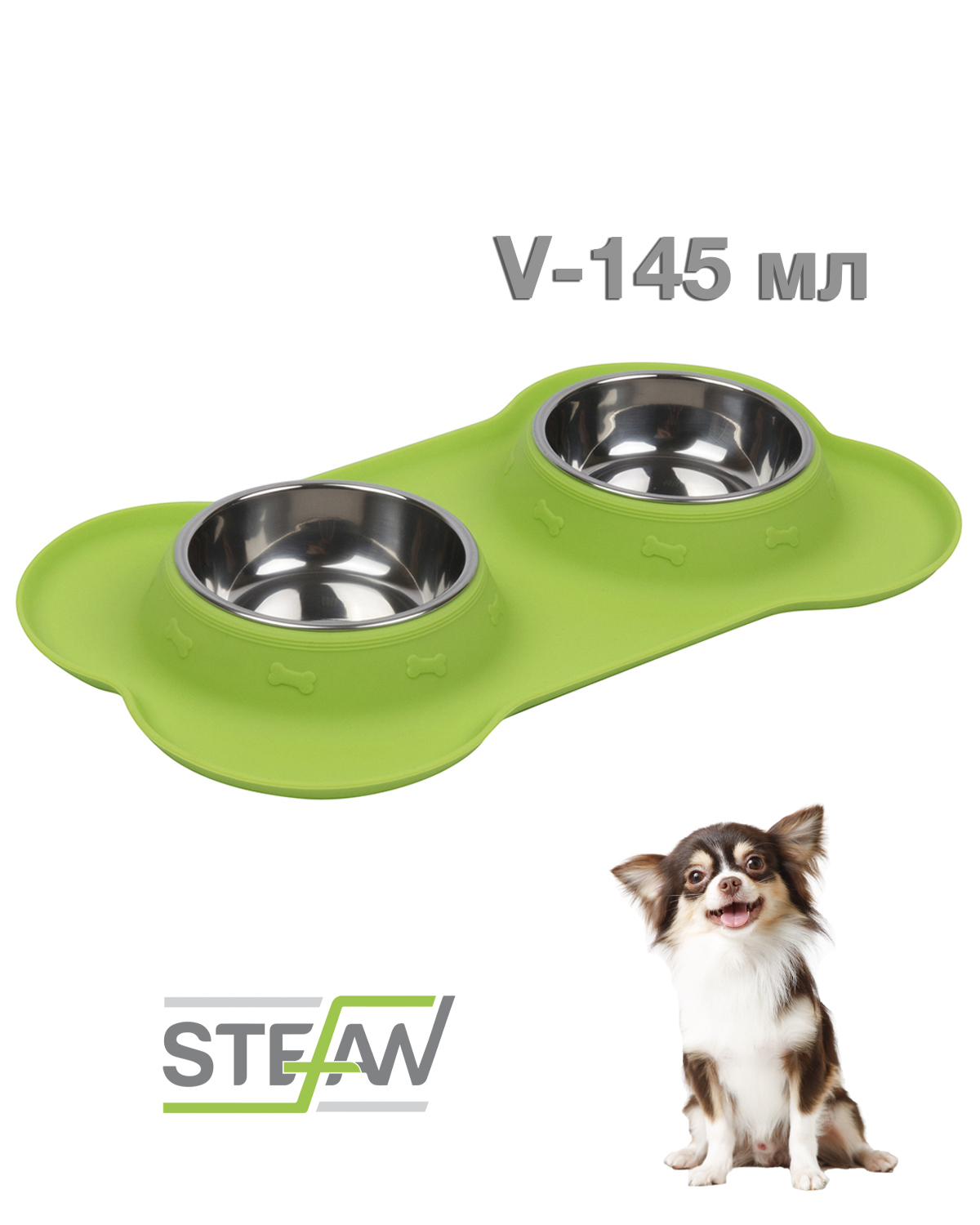 Миска для животных двойная с силиконовым основанием STEFAN, размер S, 2x145мл, салатовая, WF36506