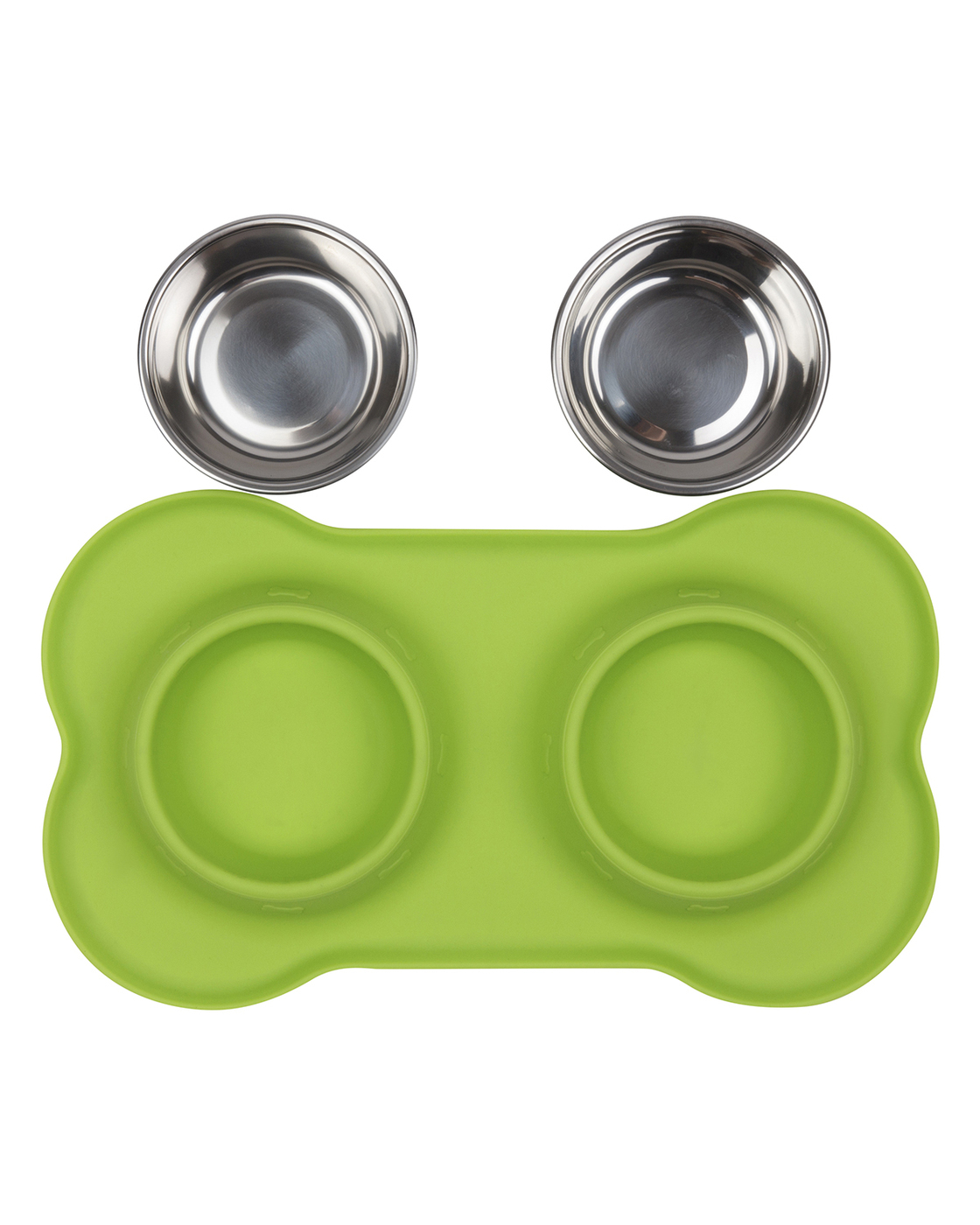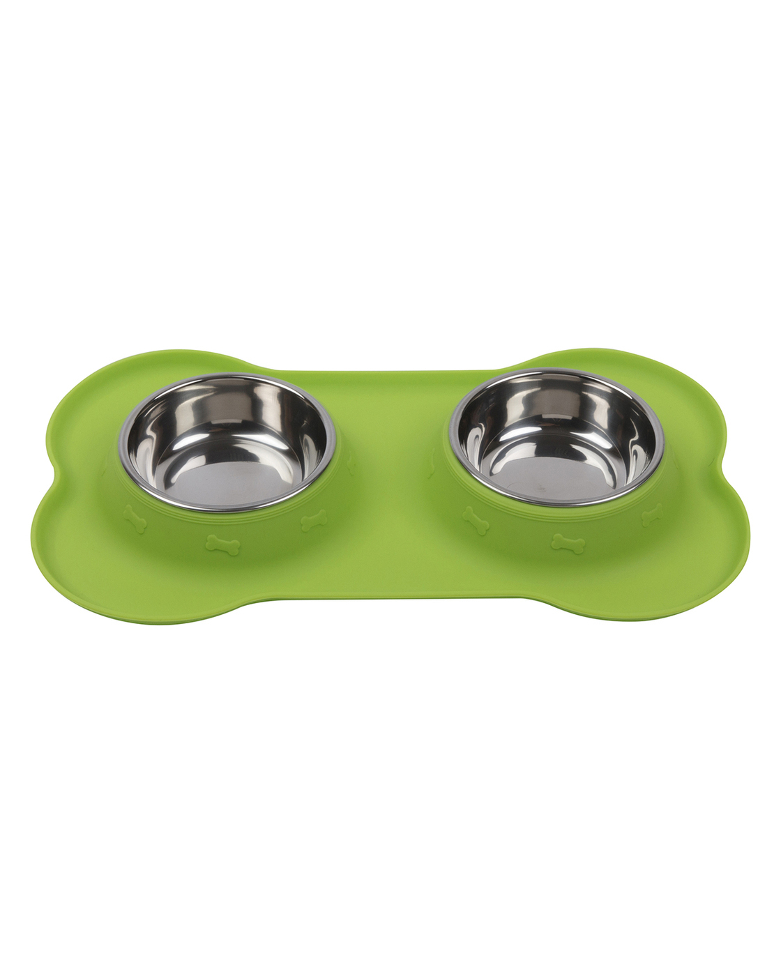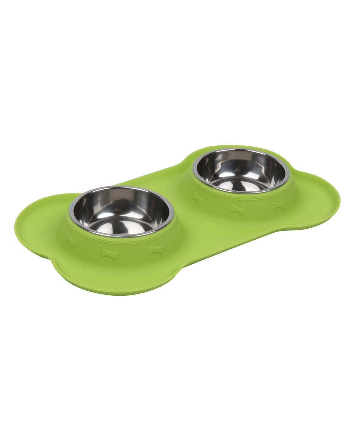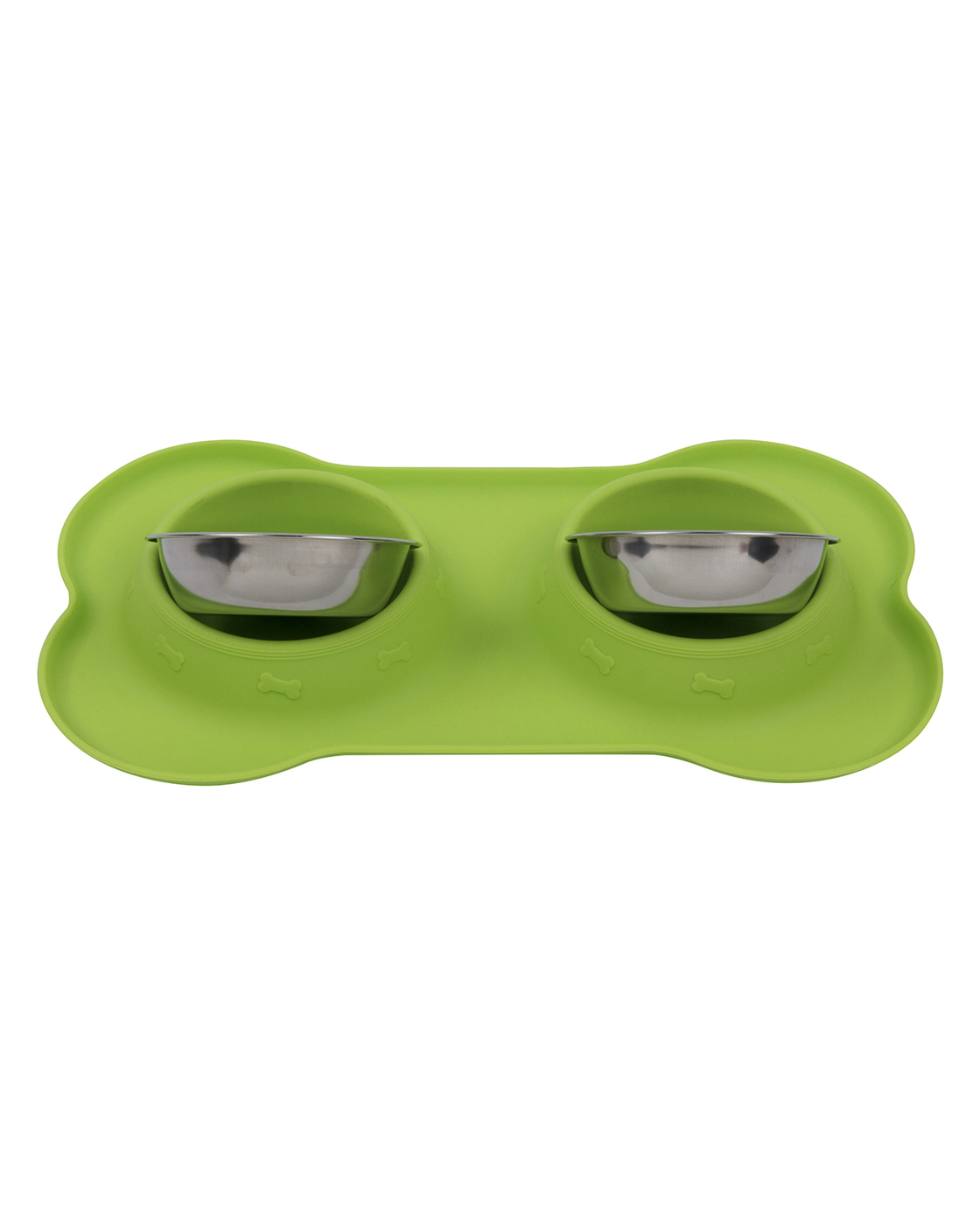 Миска для животных двойная с силиконовым основанием STEFAN, размер S, 2x145мл, салатовая, WF36506