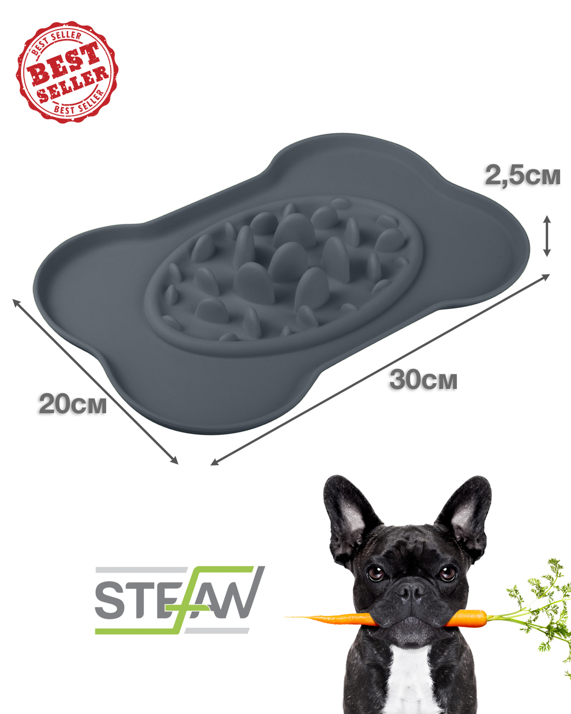 Миска интерактивная для медленного поедания корма, силиконовая STEFAN, размер M, серая, WF51101