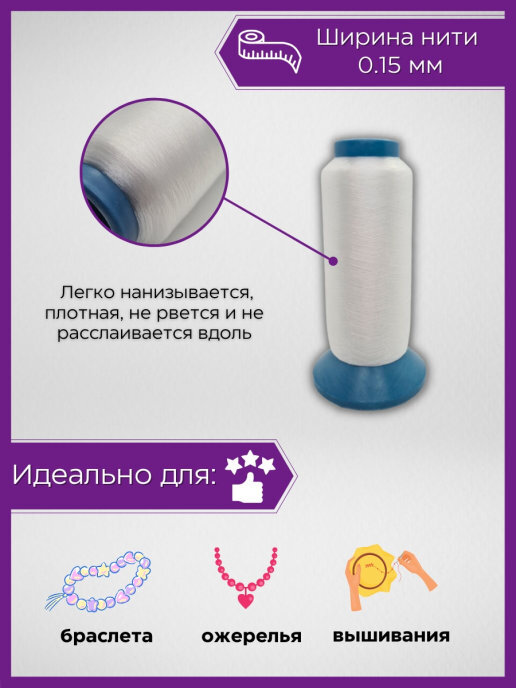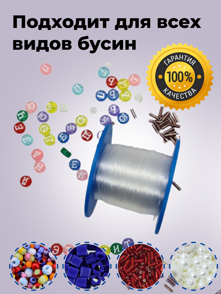 Леска для бисера 0.35мм Силиконовая резинка 0.8мм БУСИНЫ В ПОДАРОК