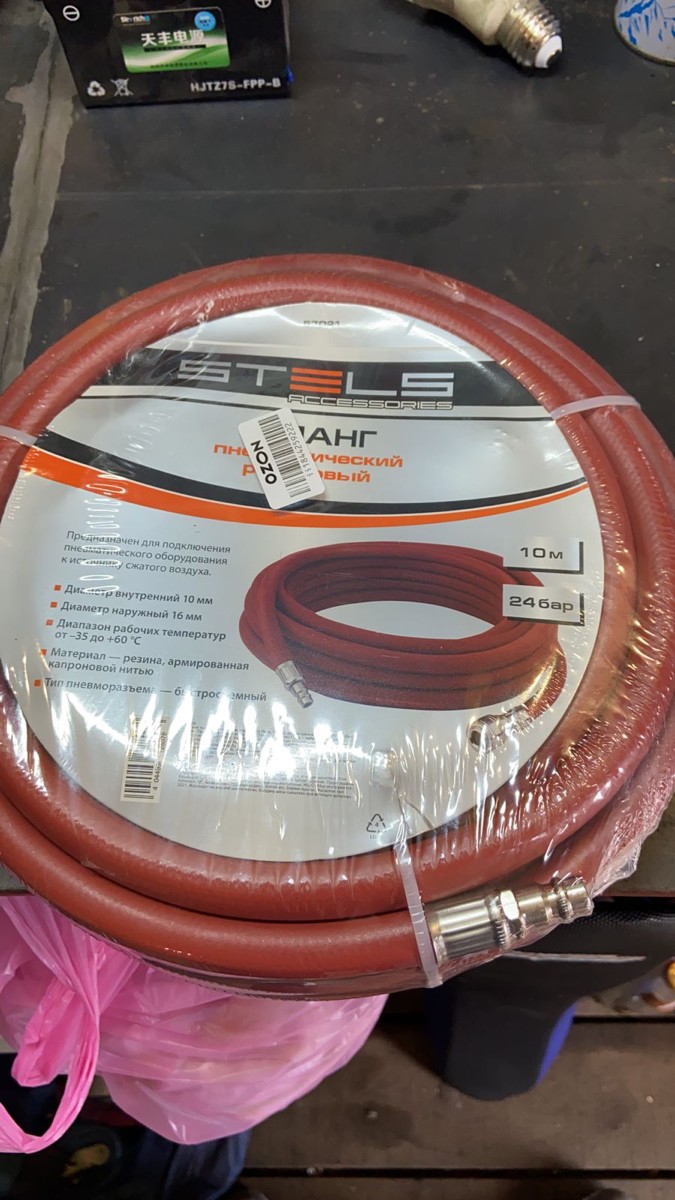 Шланг пневматический резиновый Stels, 10x16мм, 24 бар, армированный, быстросъем, 10м