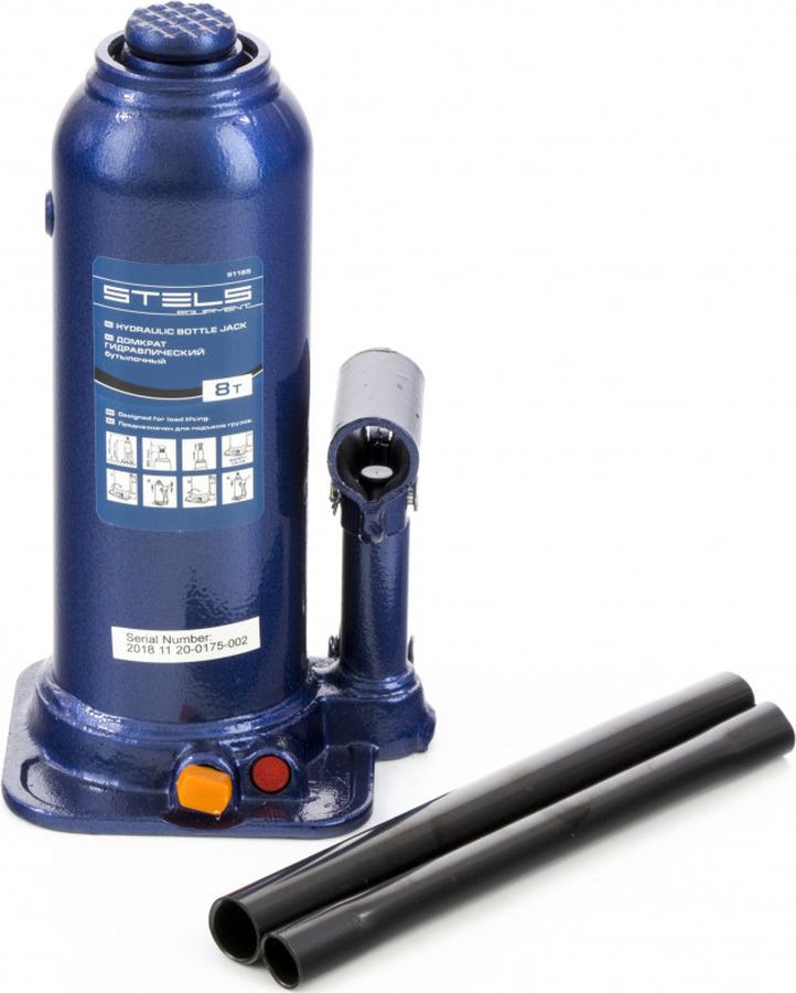 Домкрат автомобильный Бутылочный Гидравлический Stels 51165, 8 т.