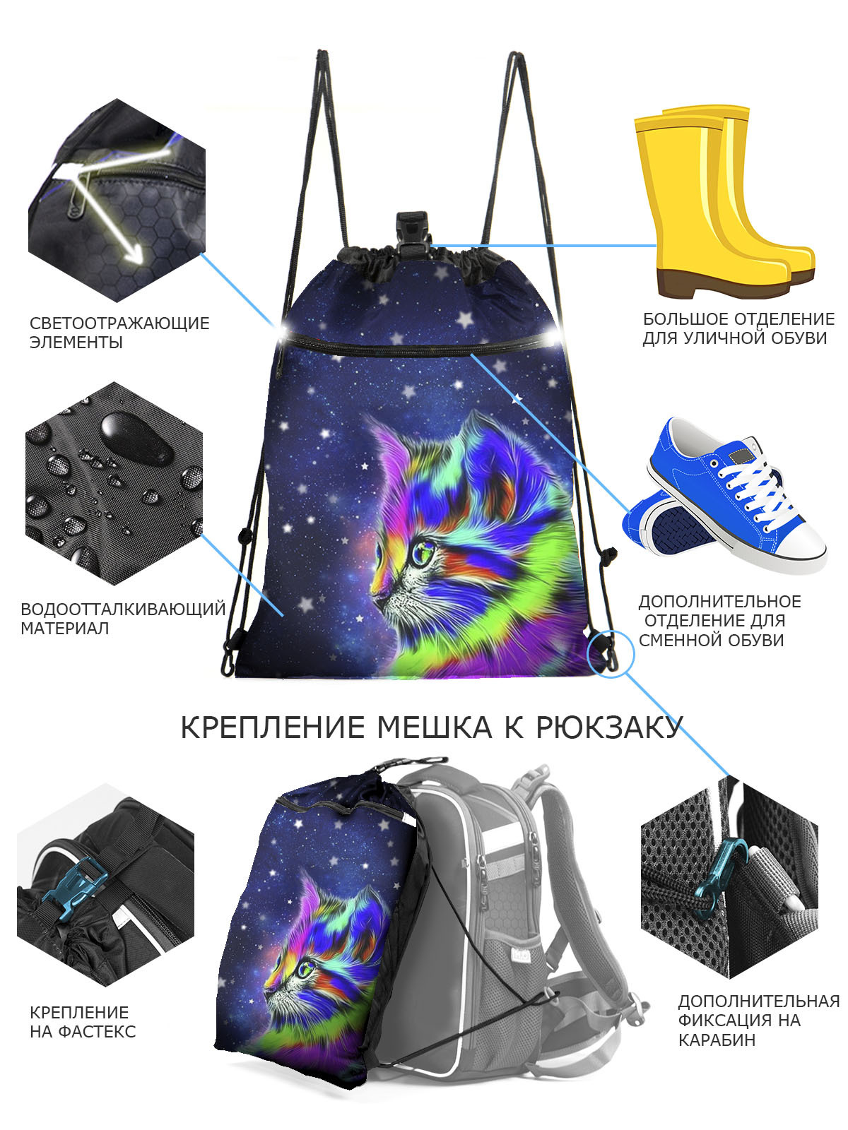 Рюкзак с мешком школьный (ортоп.спинка) STERNBAUER синий - 9306