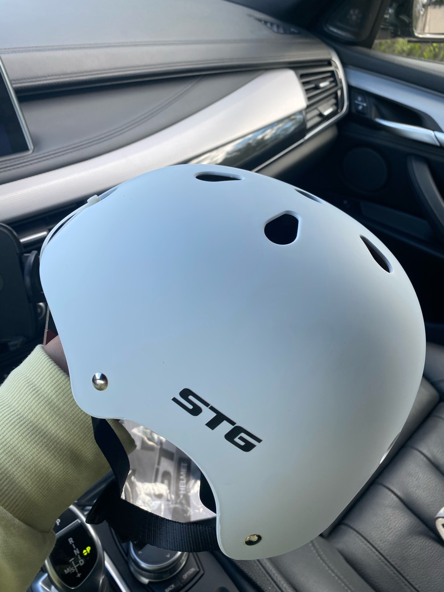 Шлем STG , модель MA-2-W, размер XS(44-48)cm белый, с фикс застежкой.C Фонариком в застежке