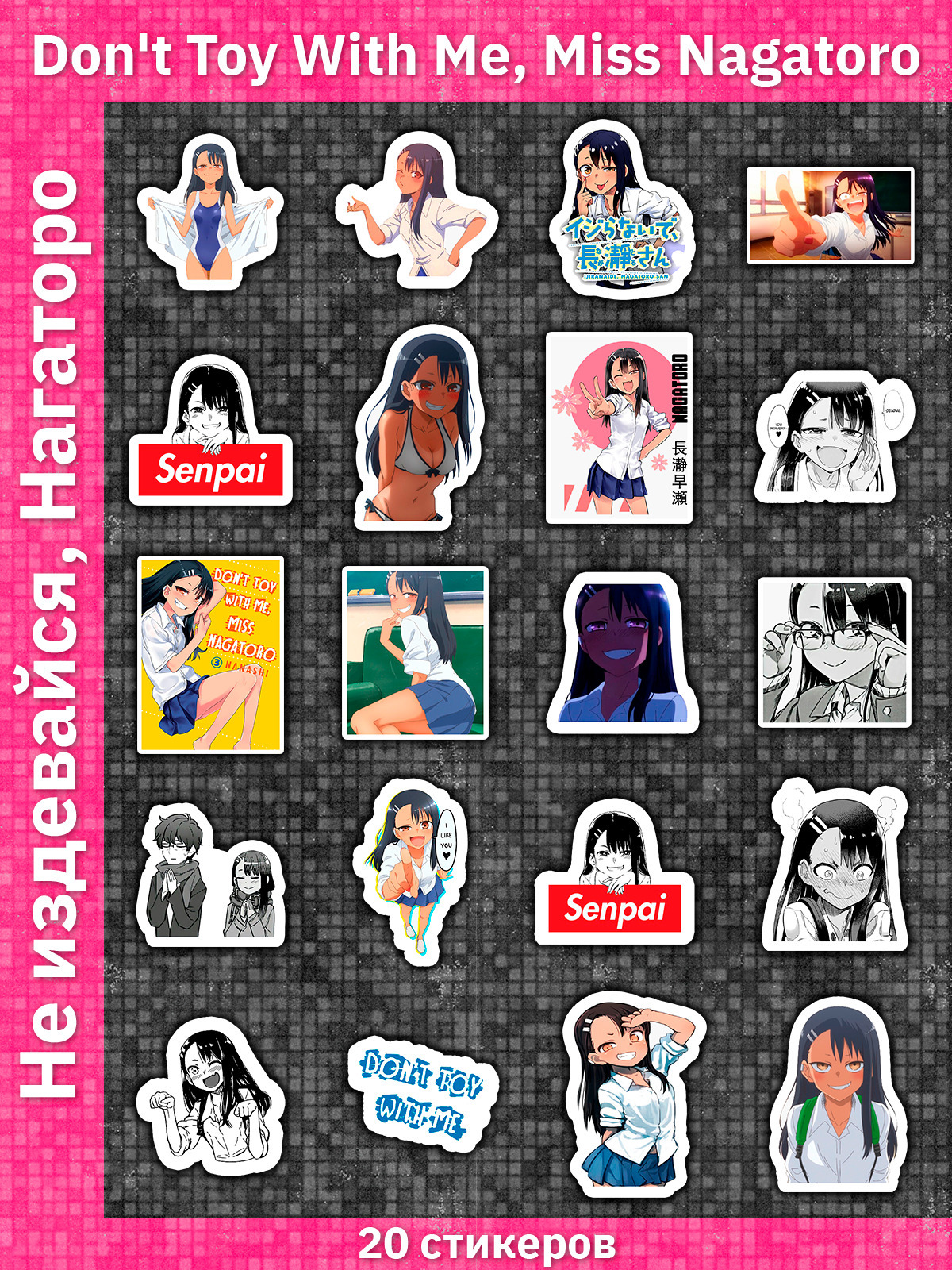 Стикерпак Don't Toy With Me, Miss Nagatoro / Не издевайся, Нагаторо / Наклейки 20 штук / Стикеры