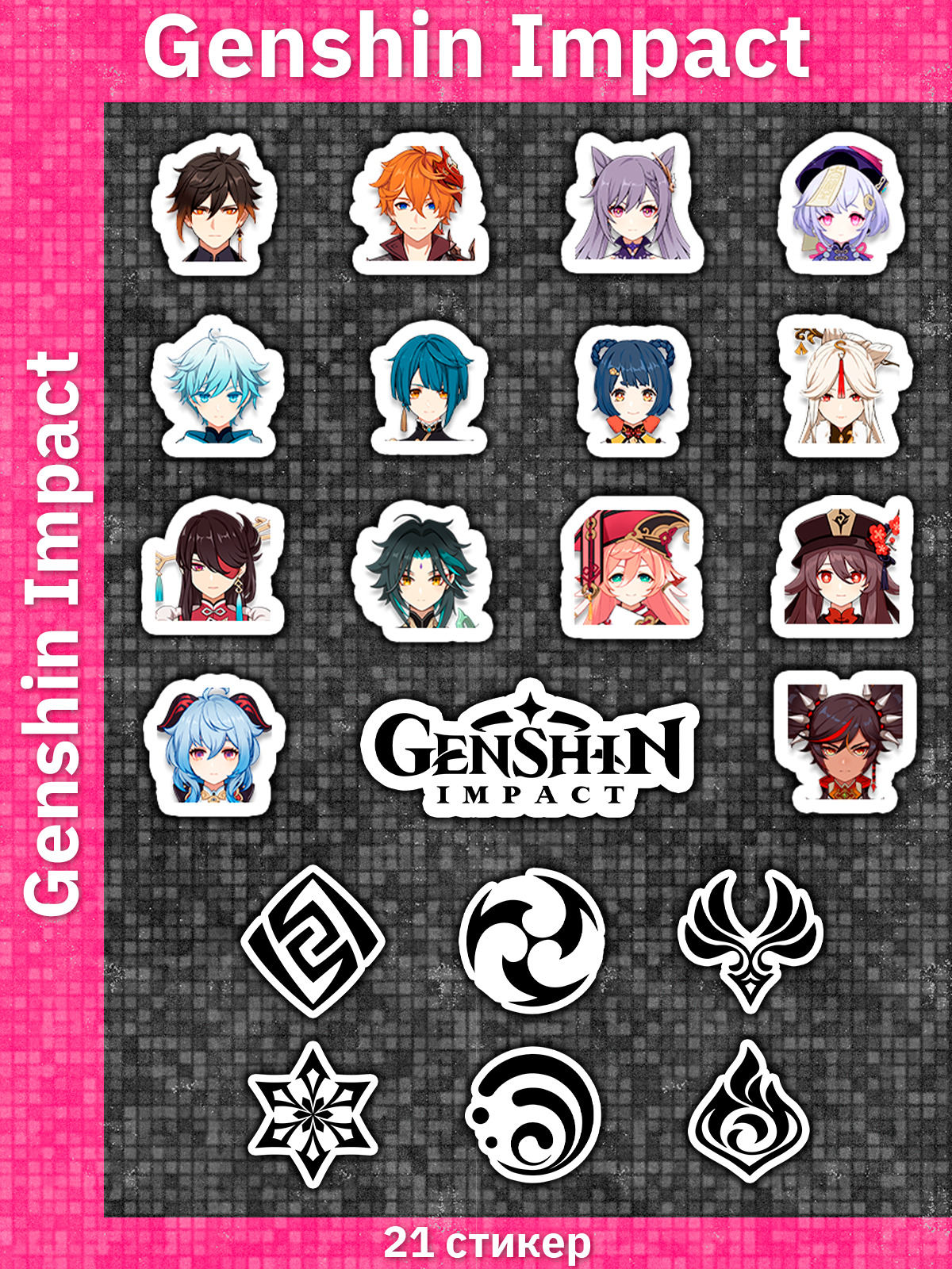 Стикерпак Genshin Impact (Геншин Импакт) / Наклейки 21шт.