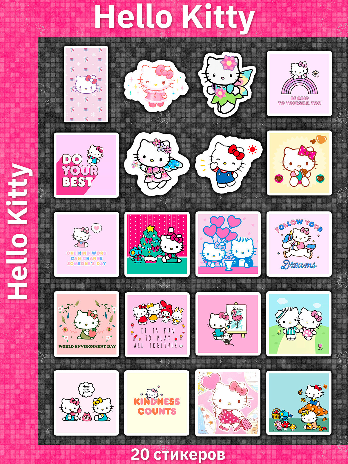 Стикерпак / Hello Kitty / Хеллоу Китти / Наклейки 20 штук / Стикеры