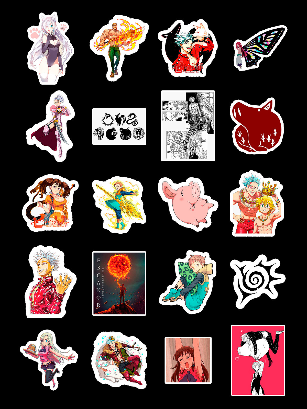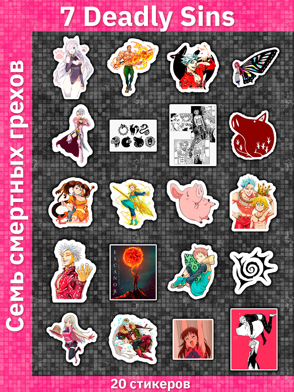 Стикерпак 7 смертных грехов / The Seven Deadly Sins / Набор наклеек / Стикеры - 20 штук