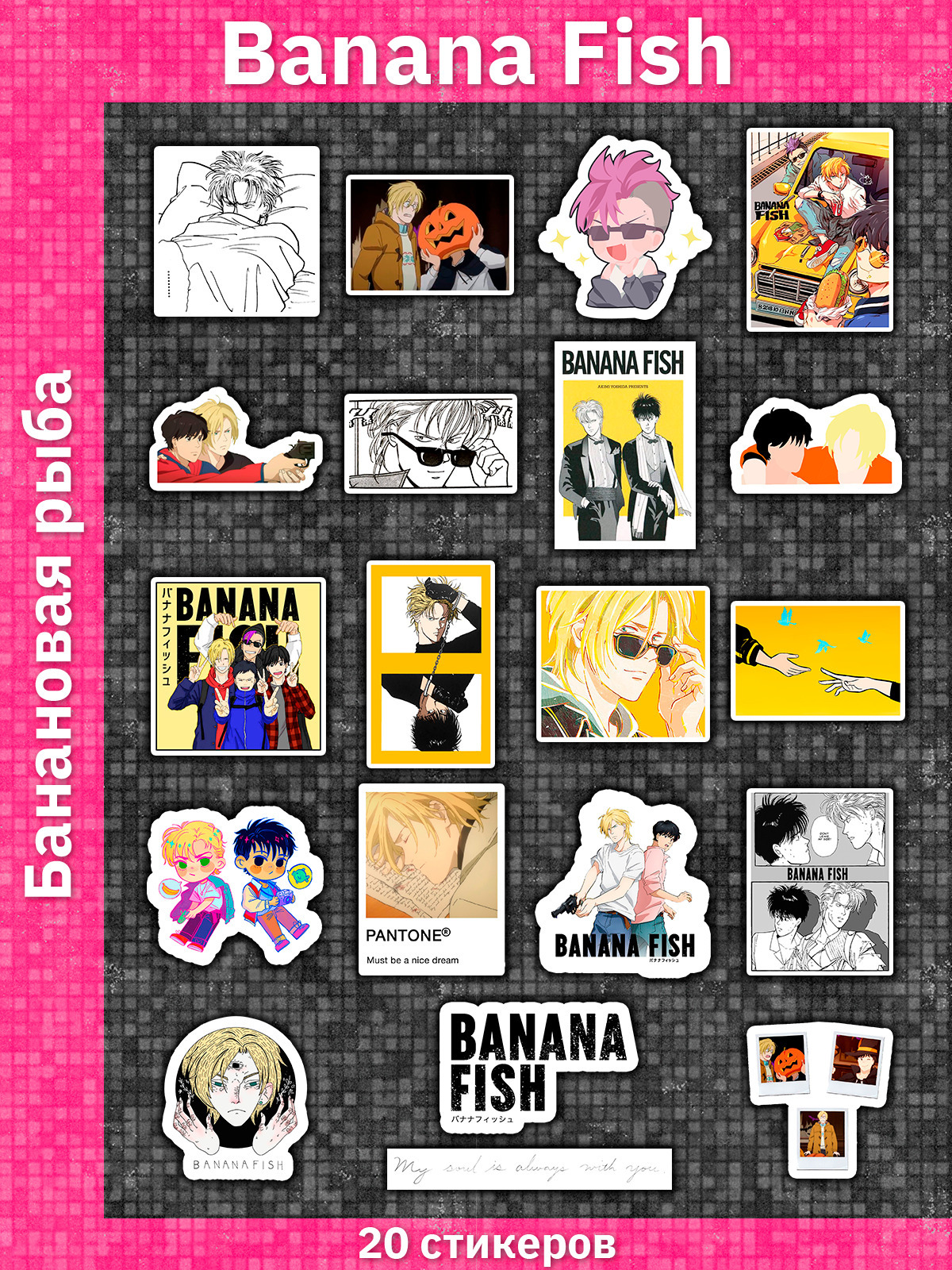 Стикерпак / Банановая рыба / Banana Fish / Наклейки 20 штук / Стикеры