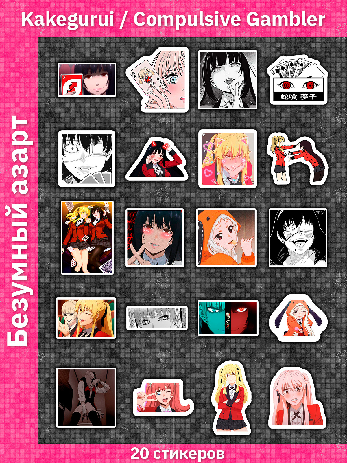 Стикерпак Безумный азарт / Kakegurui / Compulsive Gambler / Набор наклеек / Стикеры 20 шт