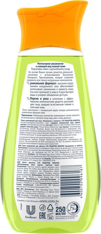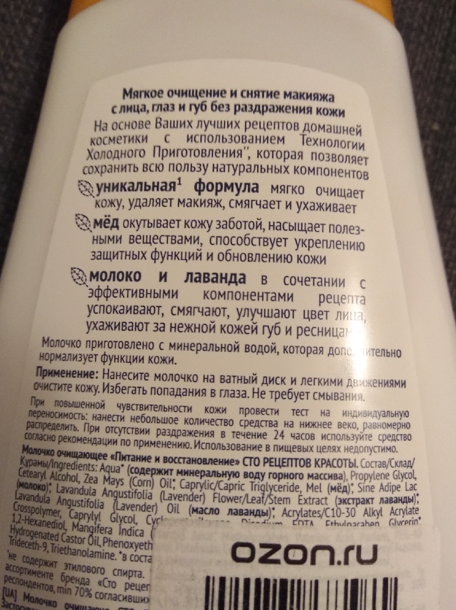 Сто рецептов красоты Молочко для умывания Питание и восстановление 250 мл