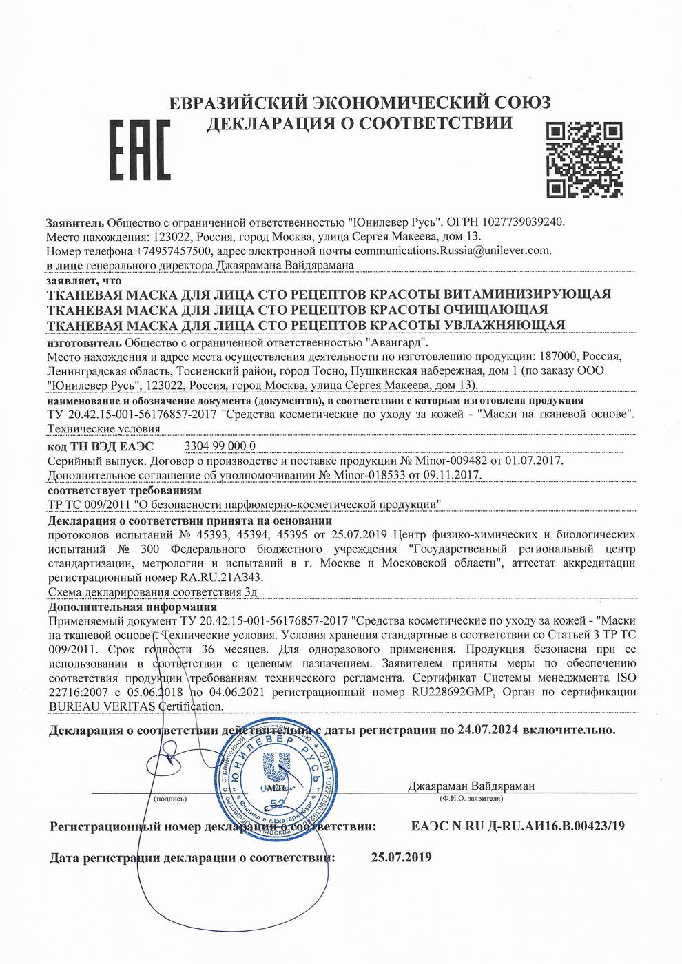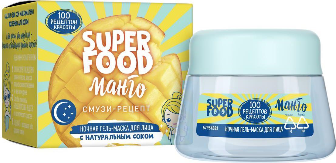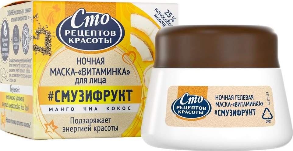 Сто рецептов красоты Гель-маска для лица ночная смузи-рецепт, 50 мл