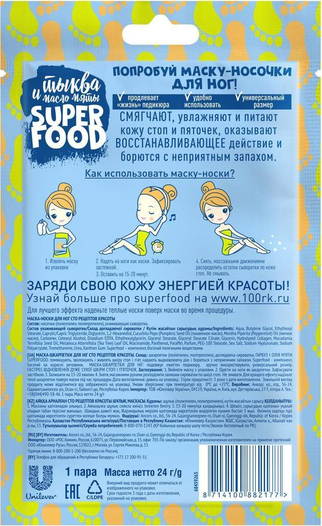 Сто рецептов красоты Маска-носки для ног экспресс-восстановление, 1 шт