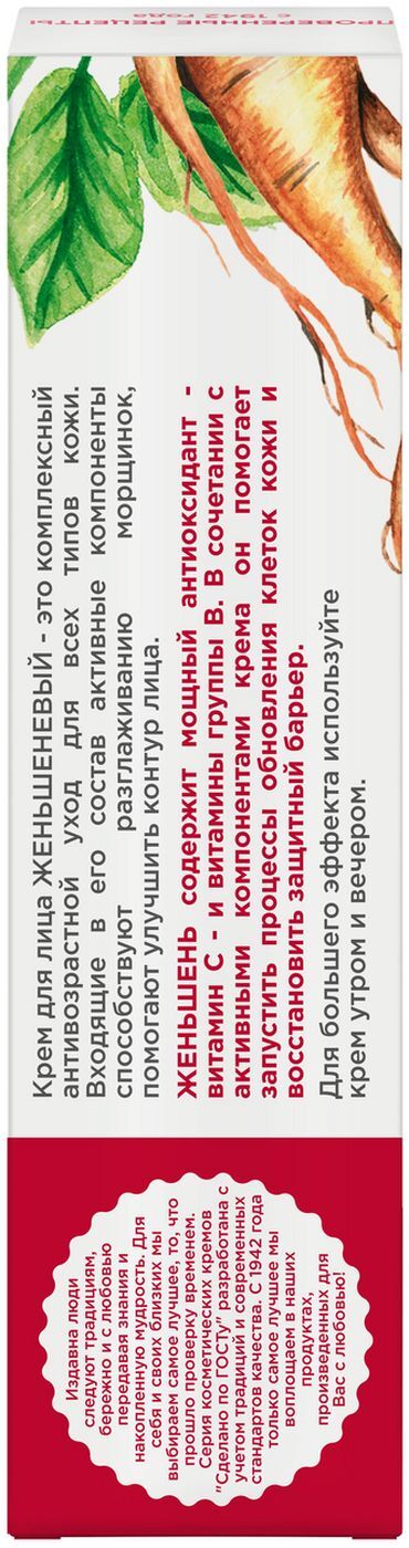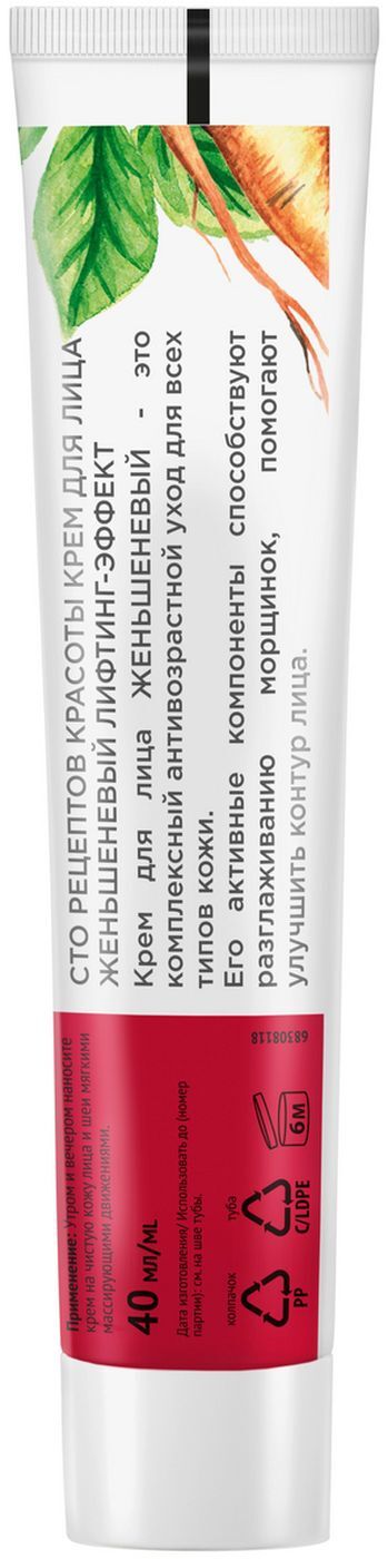 Сто рецептов красоты Лифтинг-Эффект Женьшеневый крем для лица, 40 мл