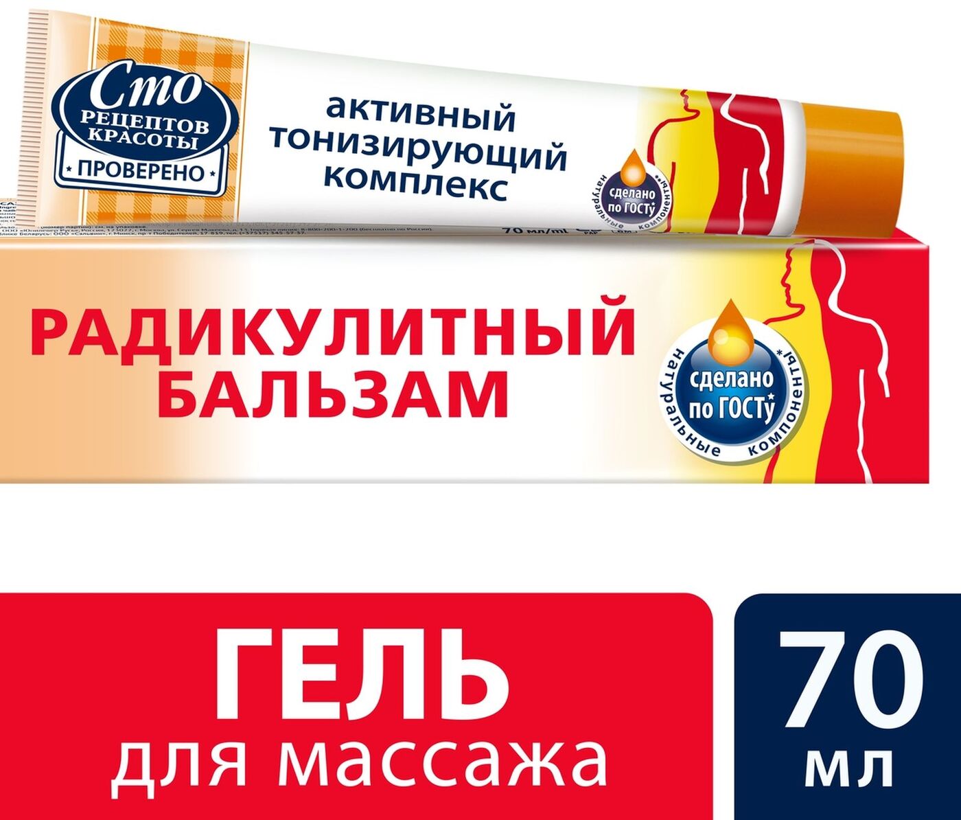 Сто рецептов красоты Гель для массажа Радикулитный бальзам, 70 мл