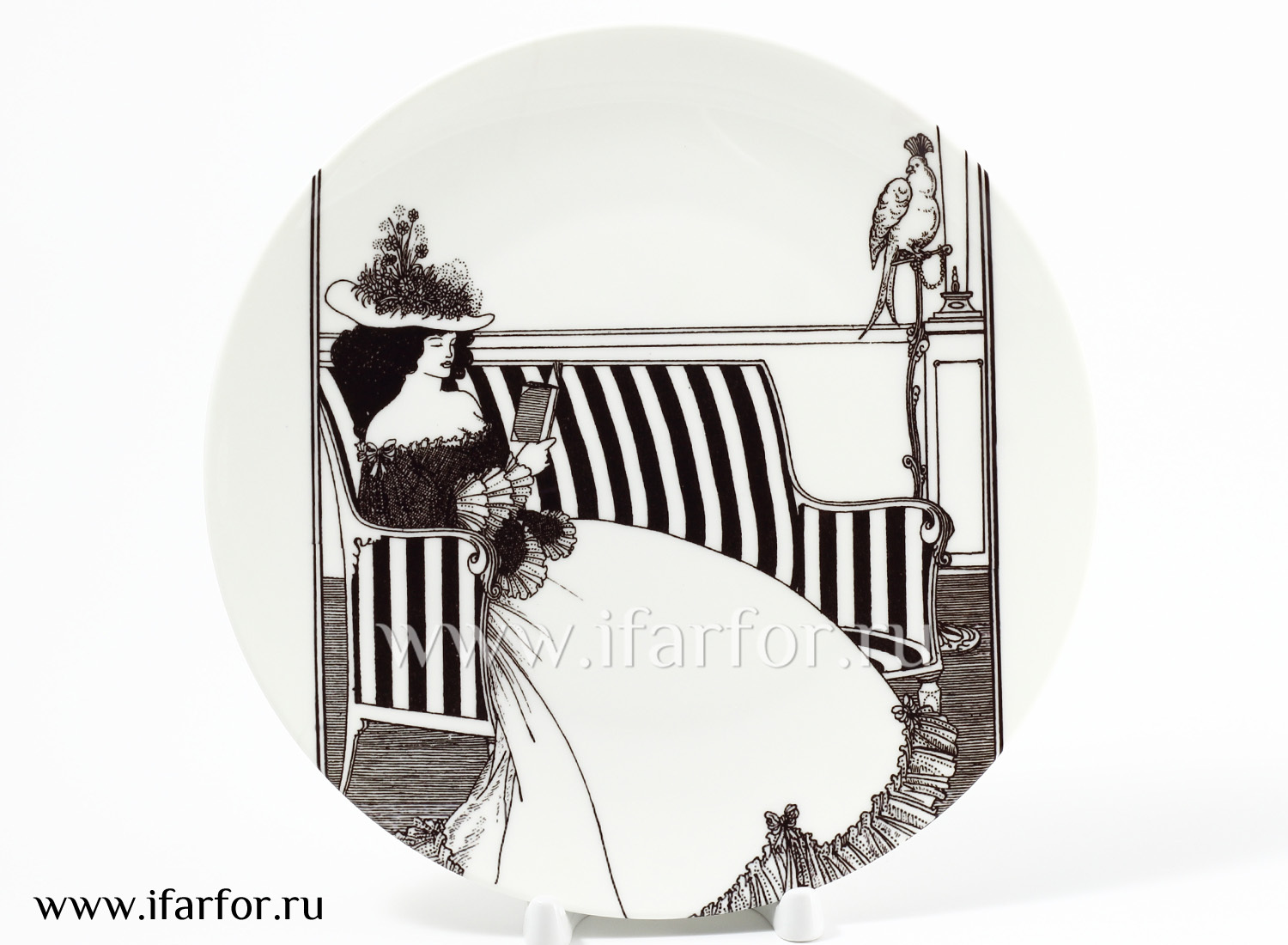 Декоративная тарелка Обри Бердслей Дама с книгой и попугай