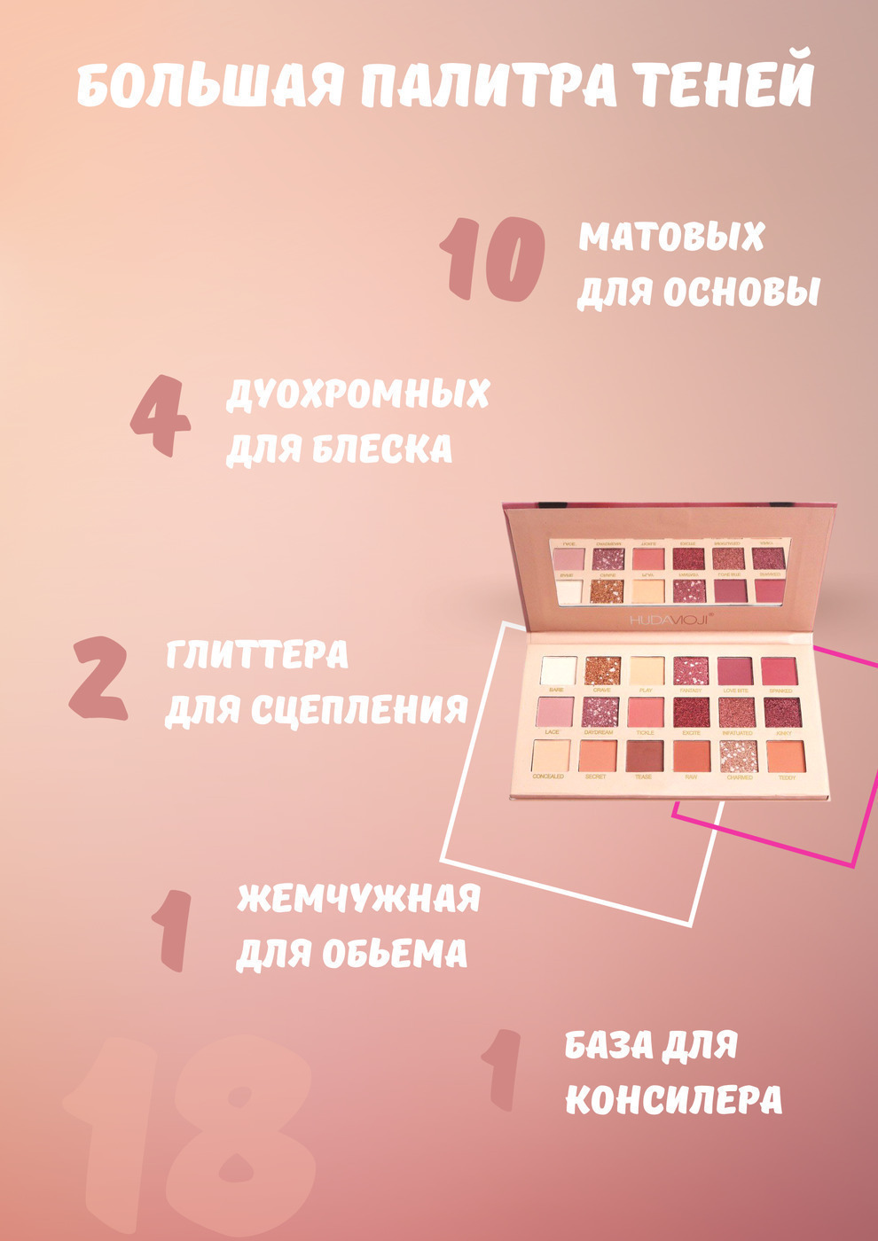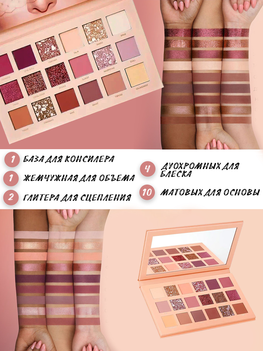 Тени / nude / Тени для глаз / Тени для век / Палетка для макияжа / 18 цветов