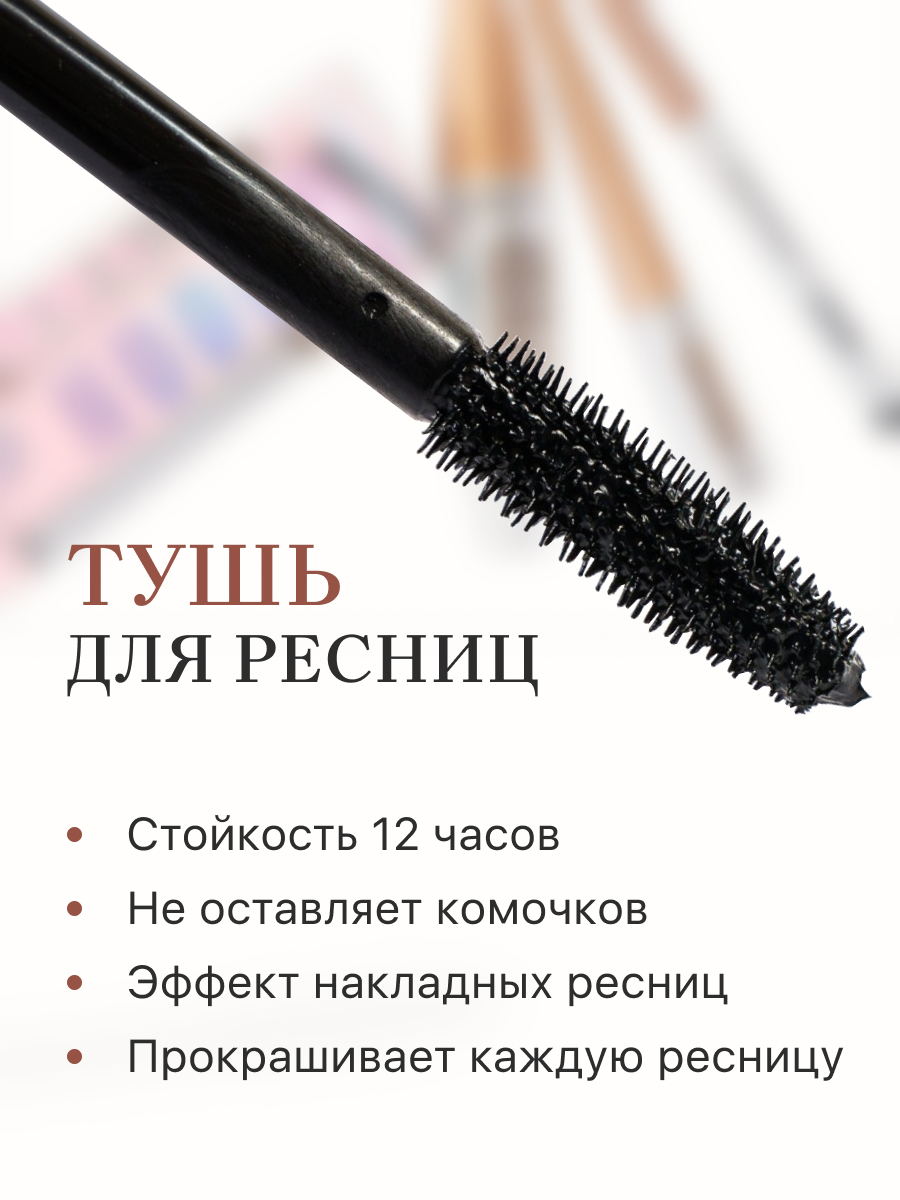 Тушь / Тушь для ресниц / Чёрная тушь для глаз / Тушь для объема ресниц / Удлиняющая тушь