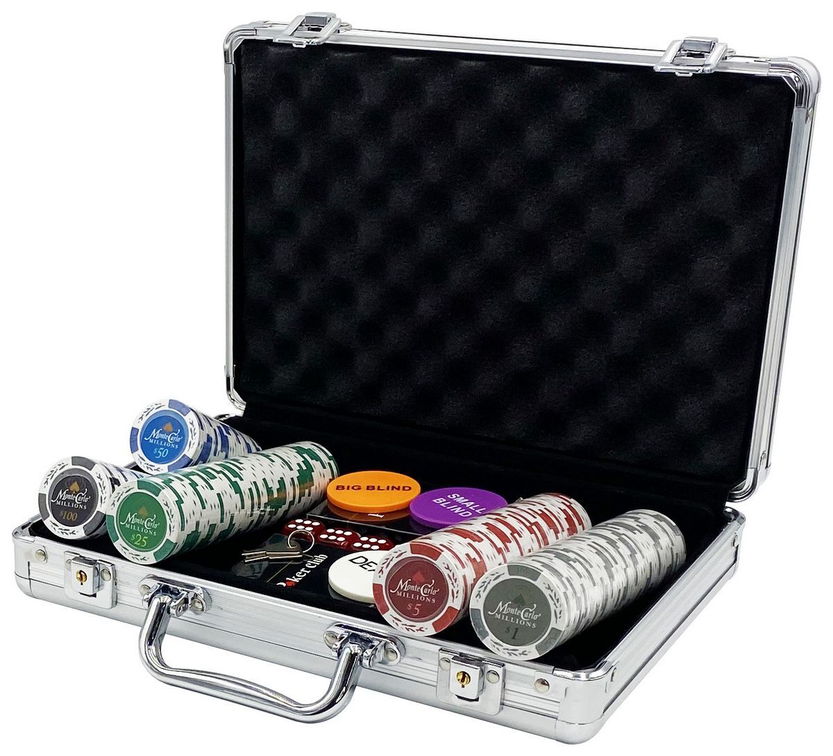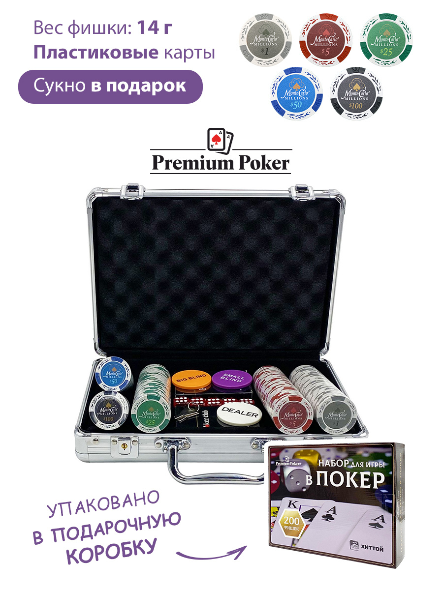 Покерный набор Premium Poker Monte Carlo, 200 фишек 14 г с номиналом в чемодане