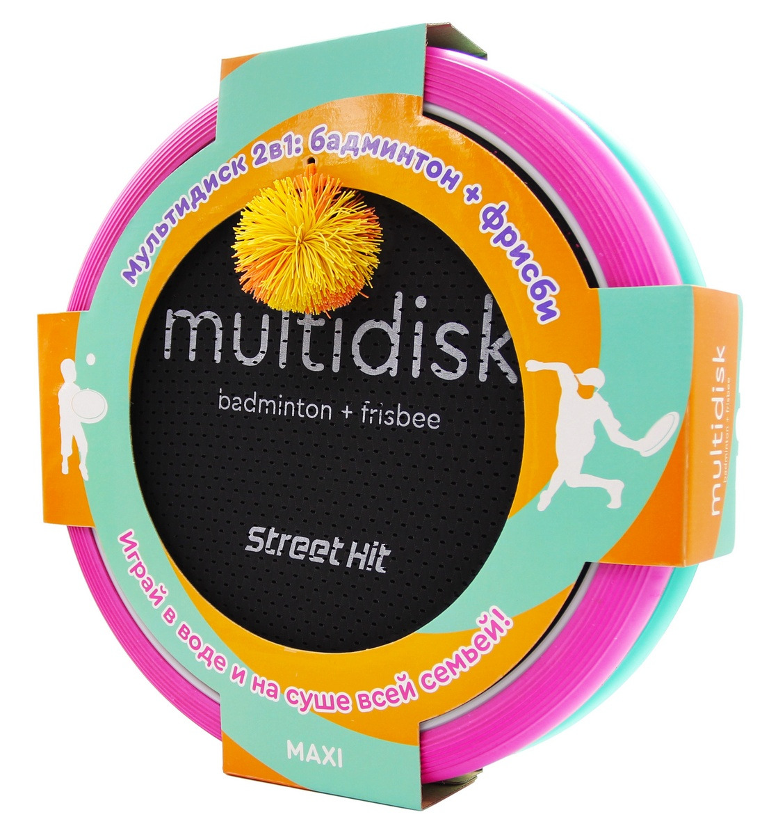 Игра Мультидиск "Street Hit" Премиум Maxi (Бадминтон+Фрисби), 40 см, розово-мятный