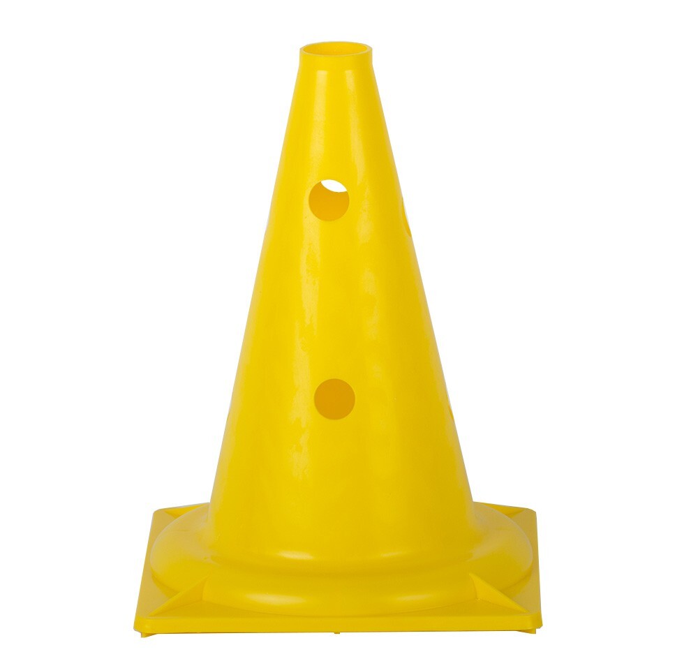Конус с отверстиями, желтый, для детских спортивных и подвижных игр, размер - 23,5 х 23,5 х 32,5 см.
