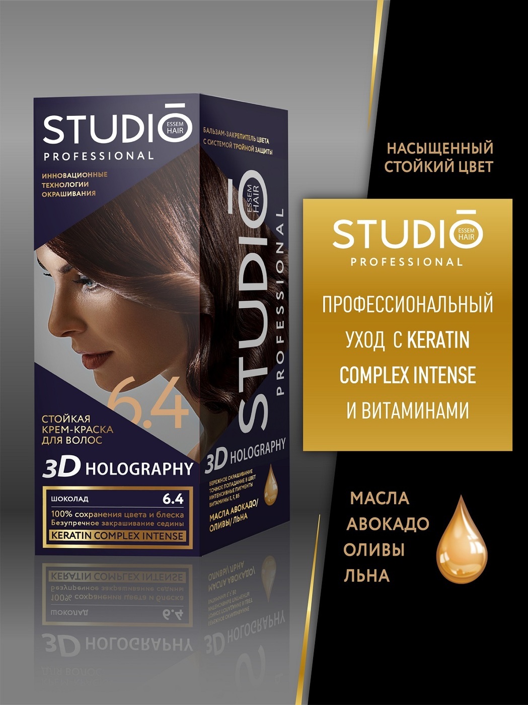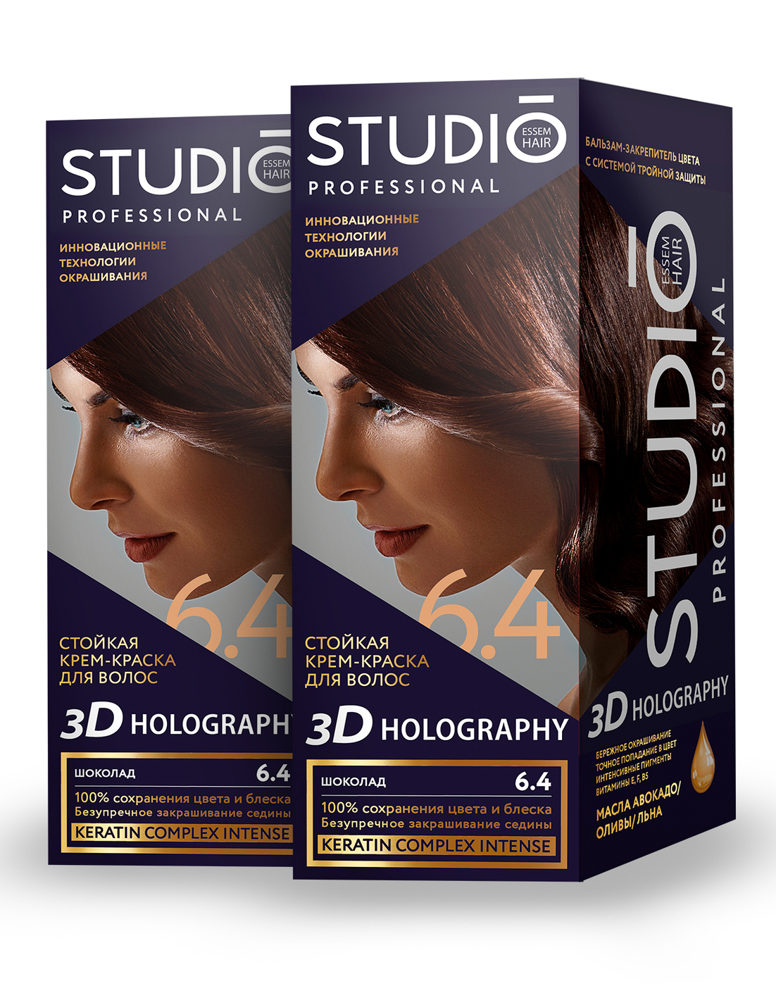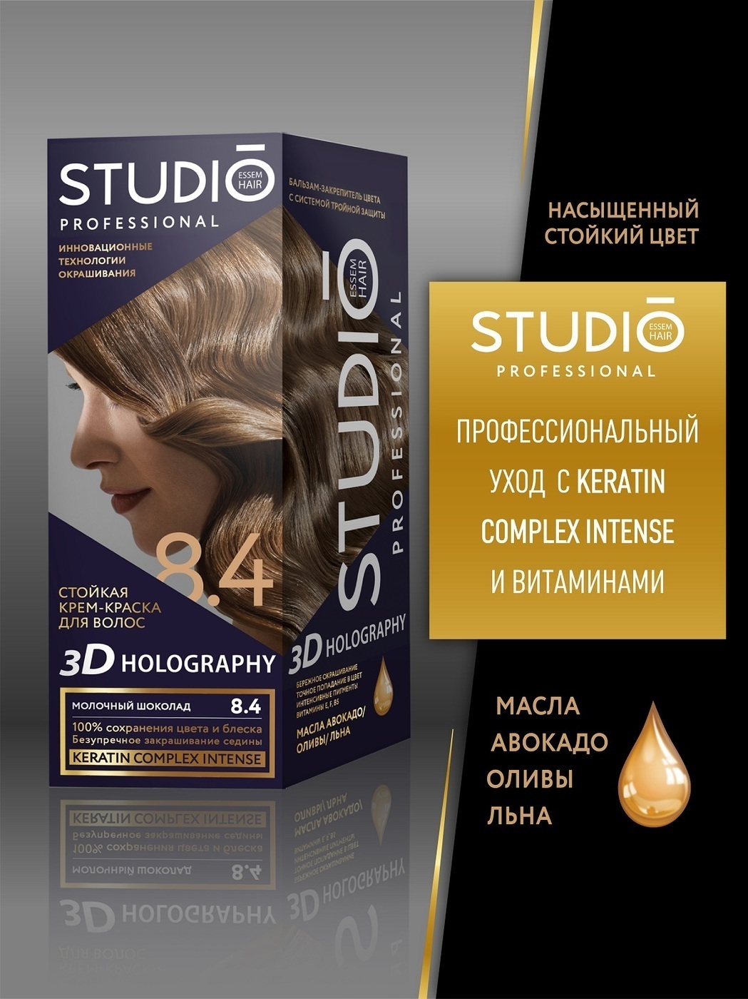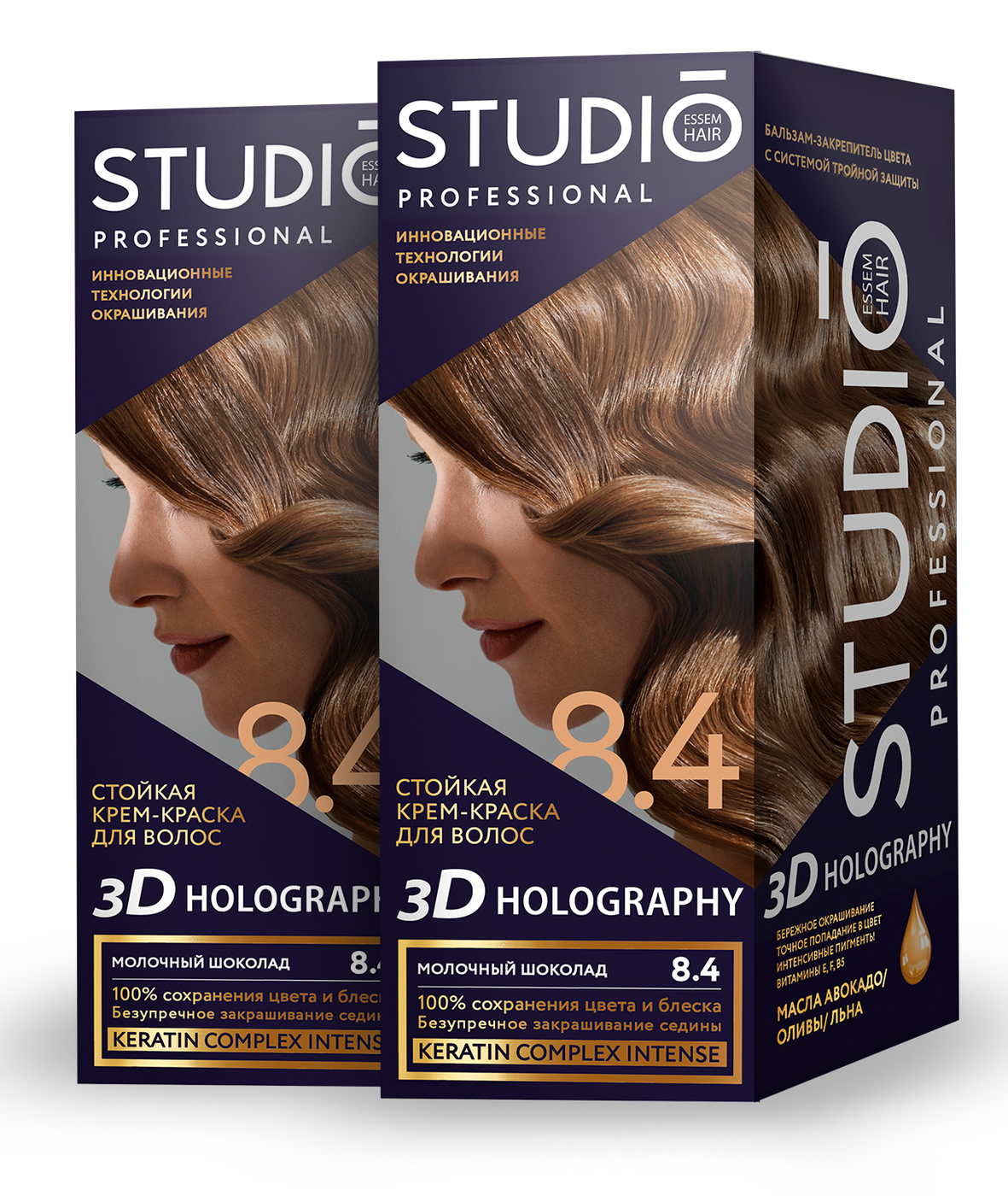 Studio стойкая крем-краска для волос 3Д Голографик 8.4 Молочный шоколад 50/50/15 мл - 2 штуки