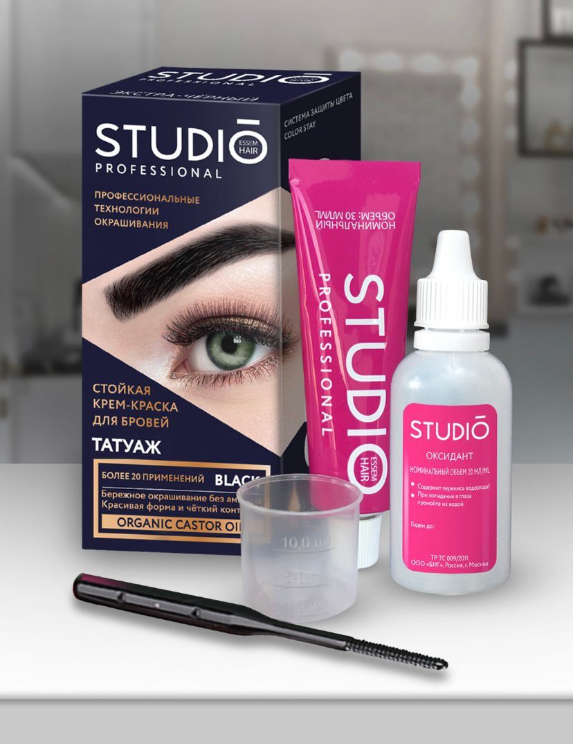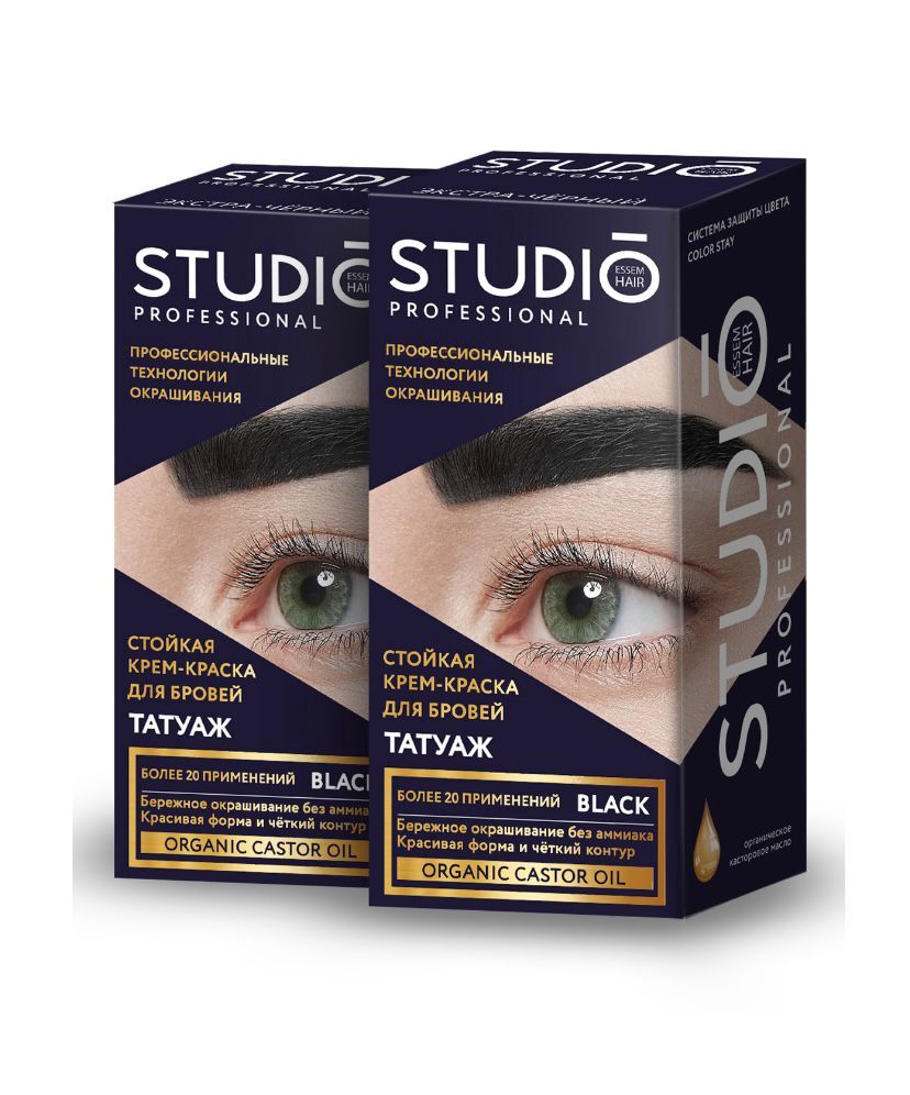 Studio Стойкая краска для бровей с эффектом татуажа Экстра-чёрная, 30/20 мл