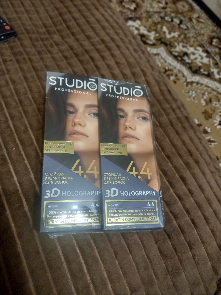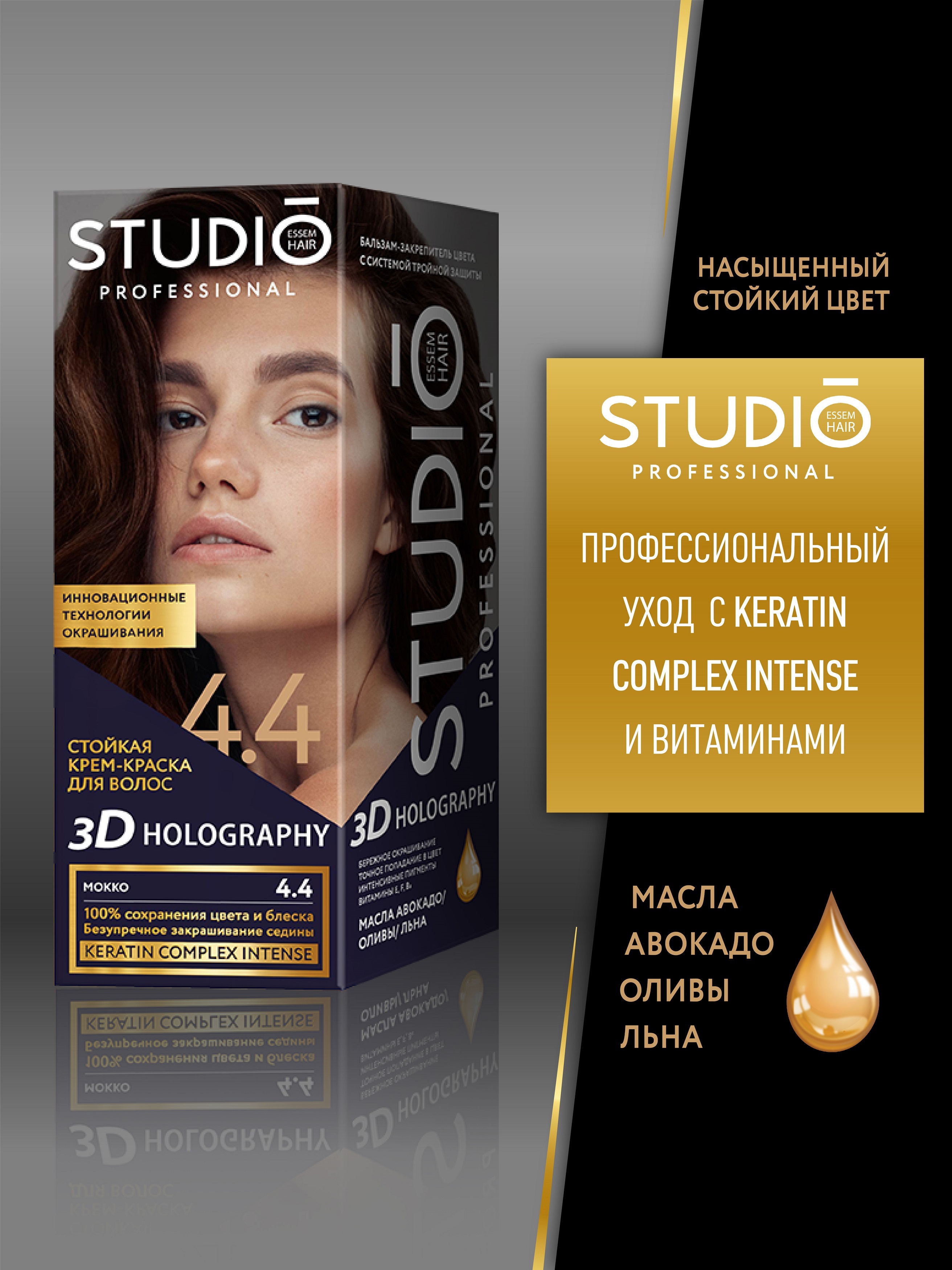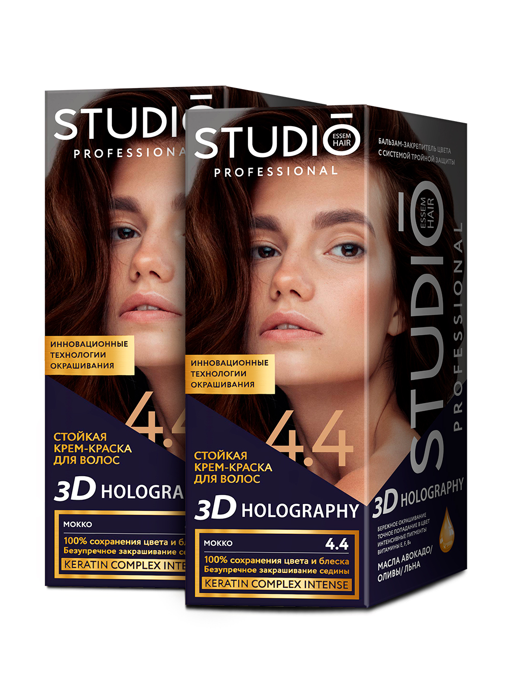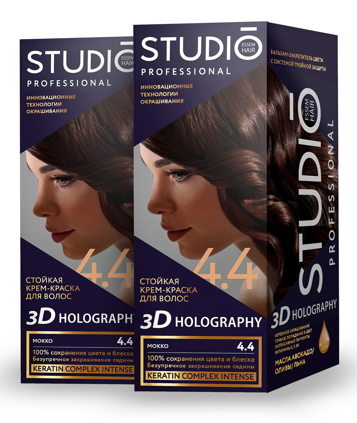 Studio стойкая крем-краска для волос 3Д Голографик 4.4 Мокко 50/50/15 мл - 2 штуки