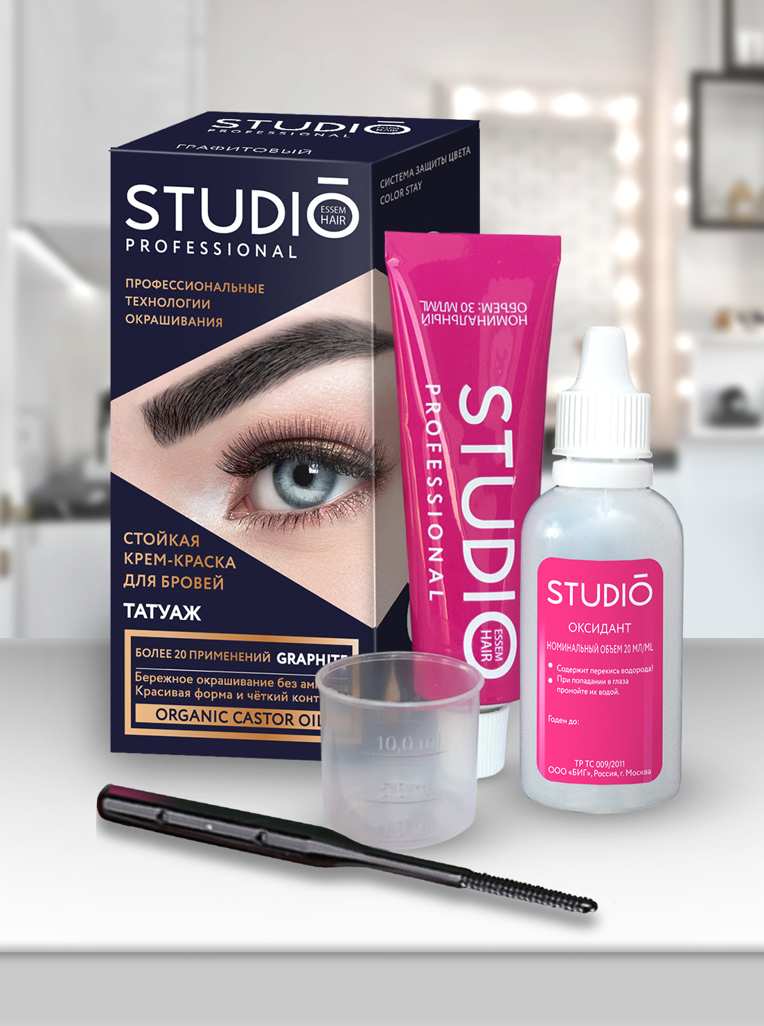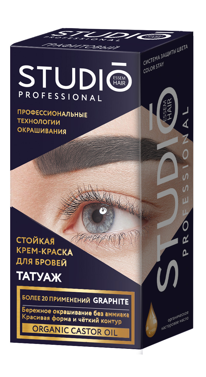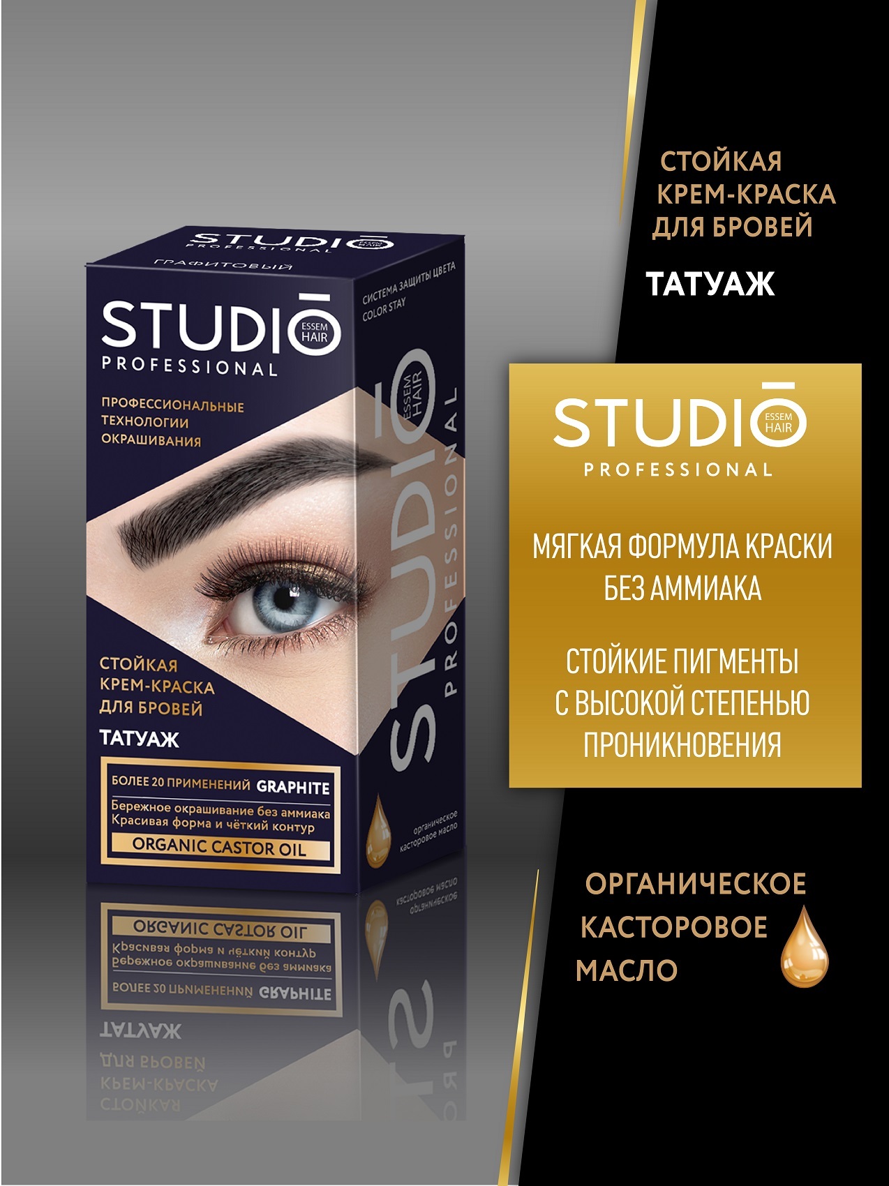 Studio Стойкая краска для бровей с эффектом татуажа Графит, 30/20 мл