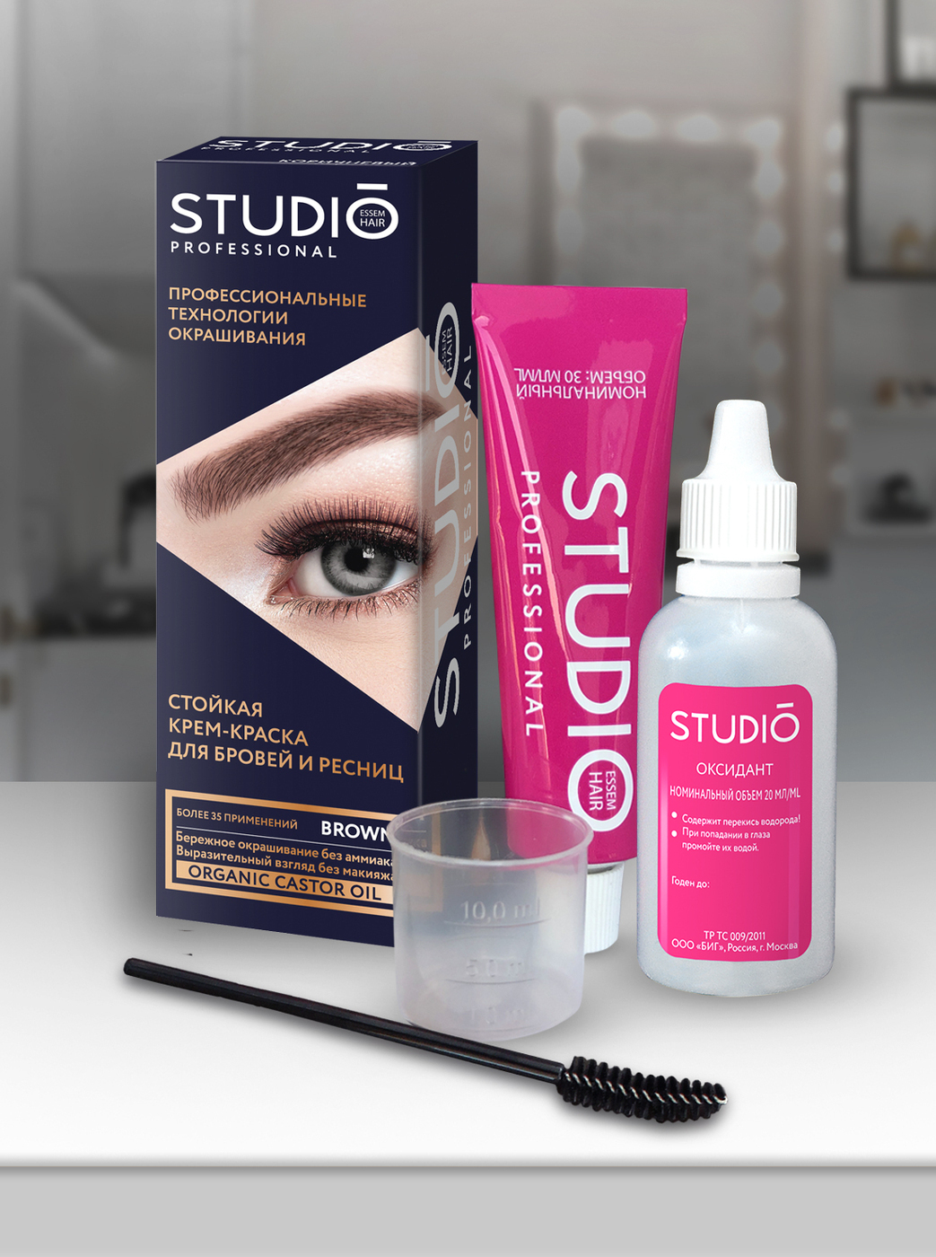 Studio Стойкая краска для бровей и ресниц Коричневая (Brown), 50/30 мл