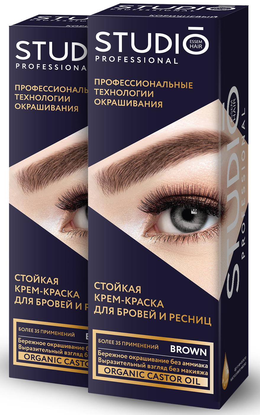 Studio Стойкая краска для бровей и ресниц Коричневая (Brown), 50/30 мл - 2 штуки