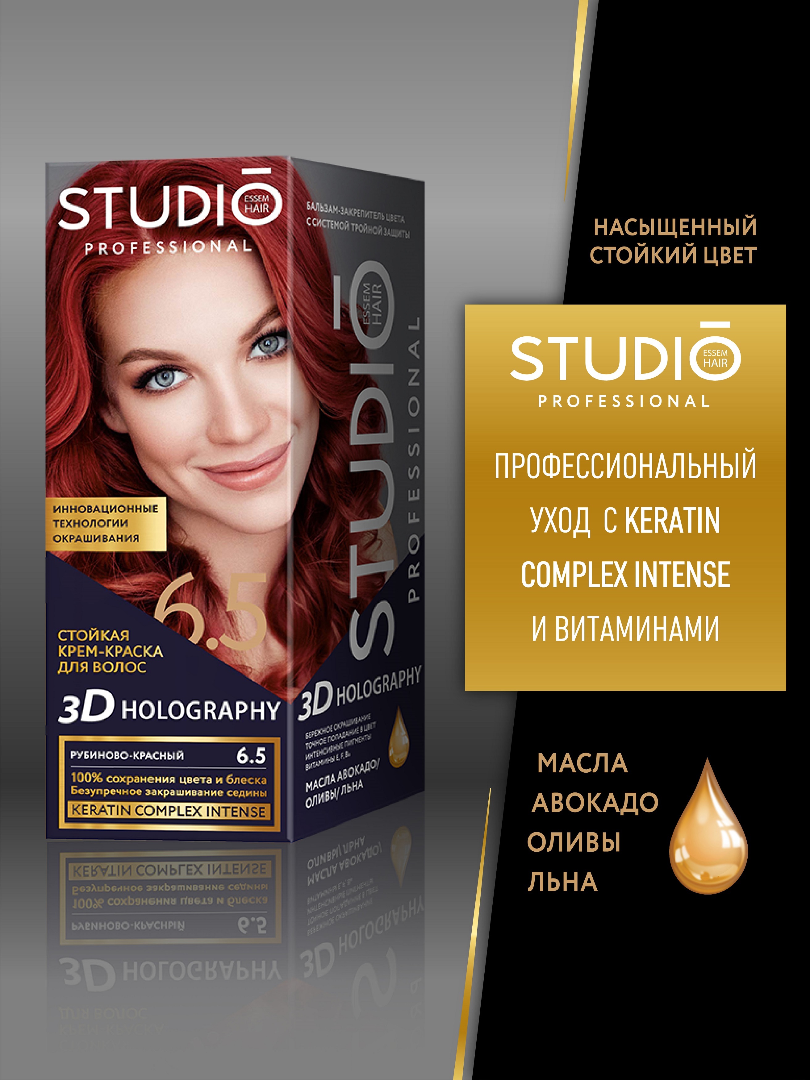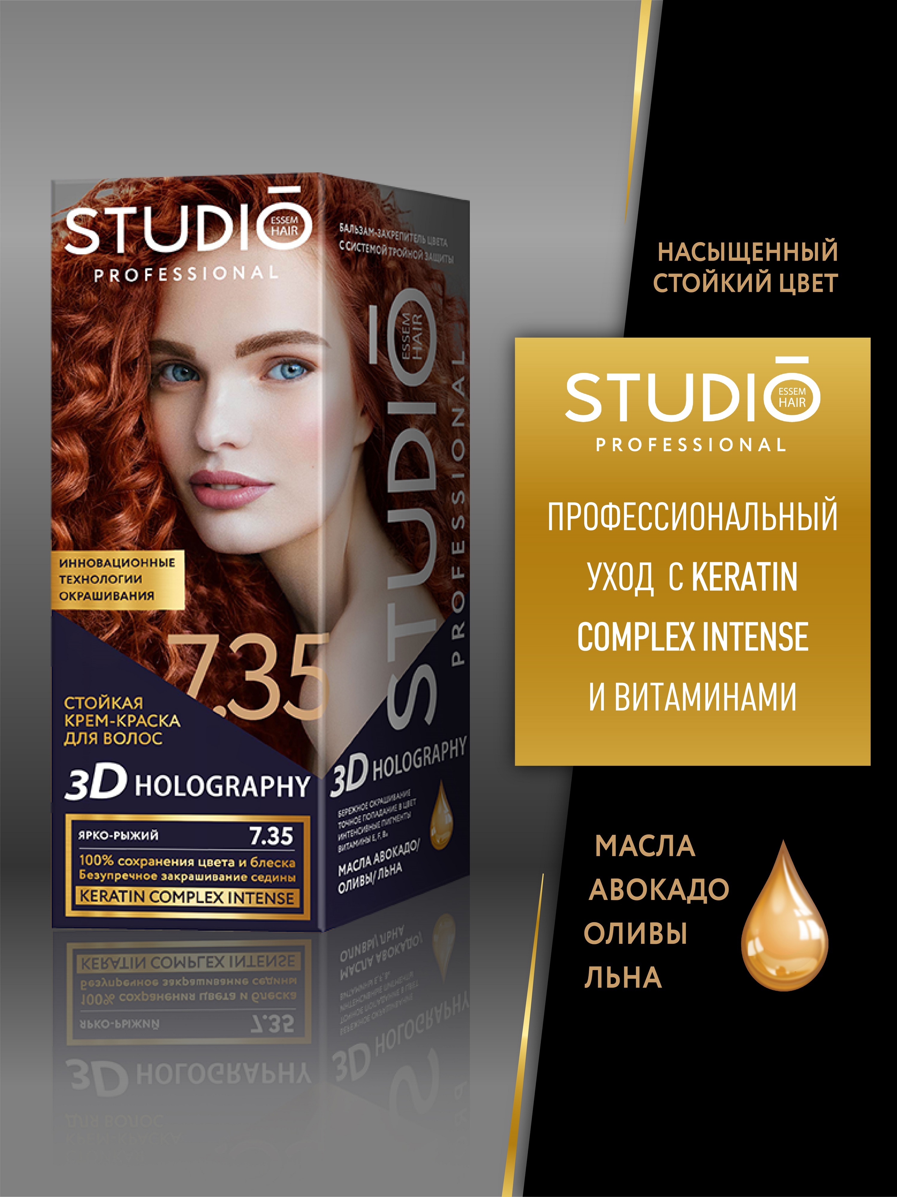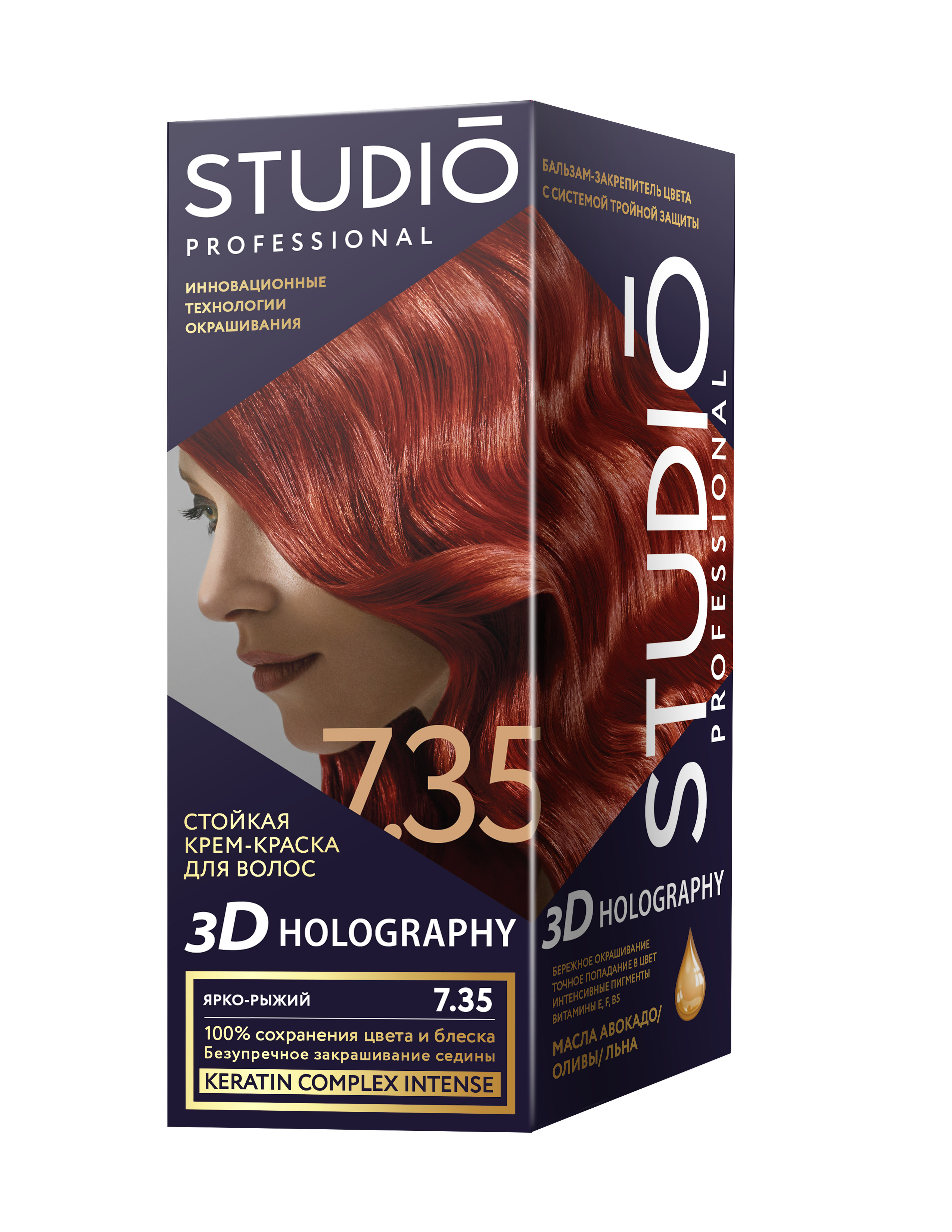 Studio стойкая крем-краска для волос 3Д Голографик 7.35 Ярко-рыжий 50/50/15 мл