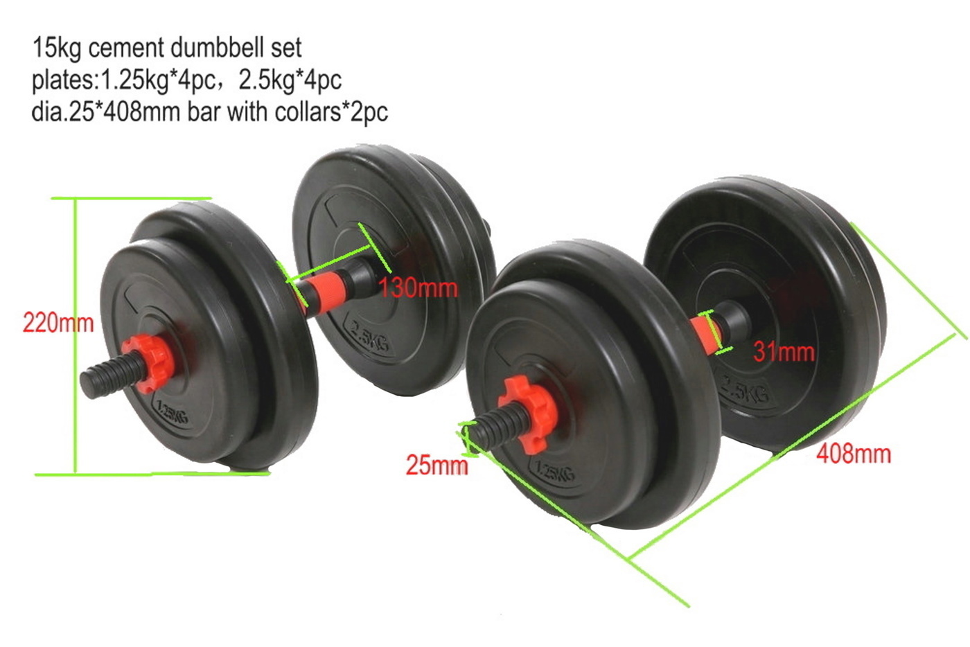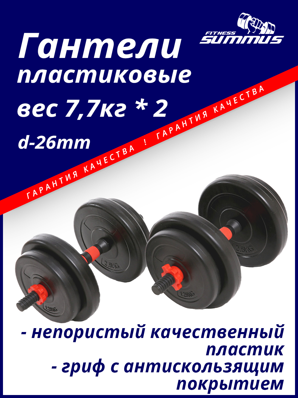 Гантели Summus длинный гриф., 2 шт. по 7.5 кг, черный цвет