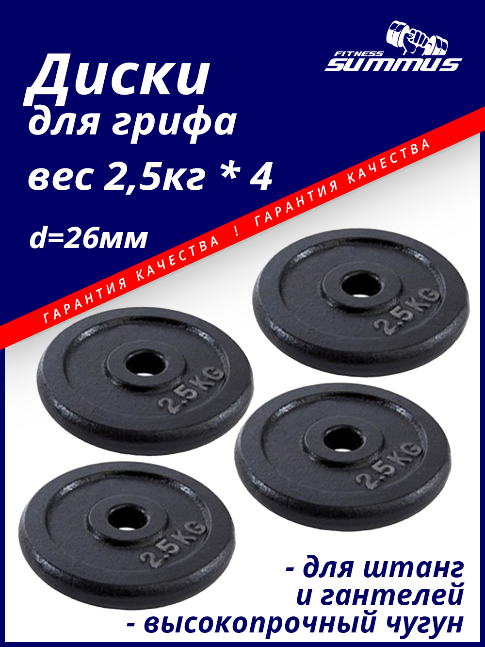 Диски для грифа Summus, чугунные 4 шт. по 2,5 кг, d-26мм, арт. 3010-131