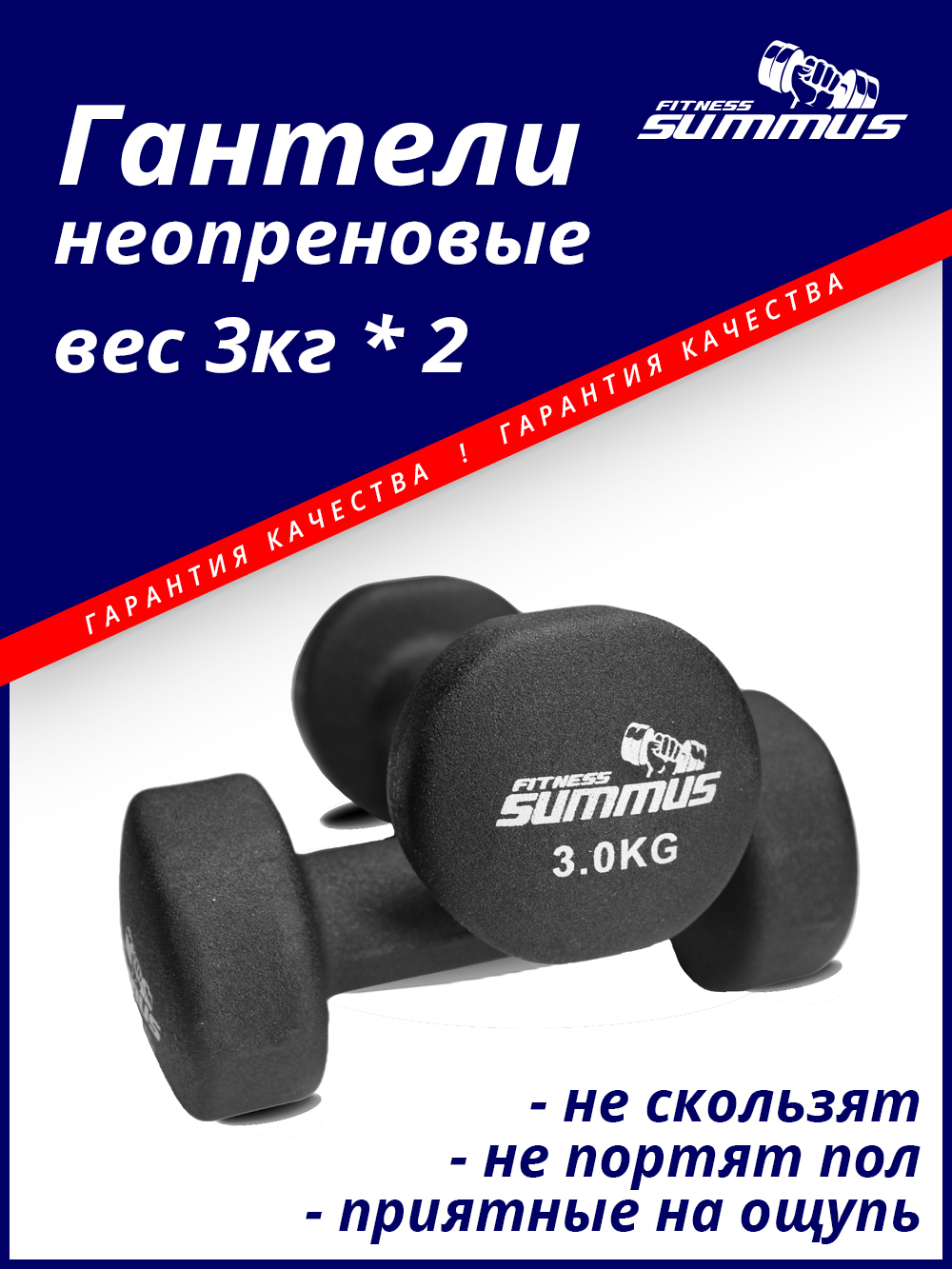 Гантели Summus неопреновые неразборные, 2 шт. по 3 кг, черный цвет