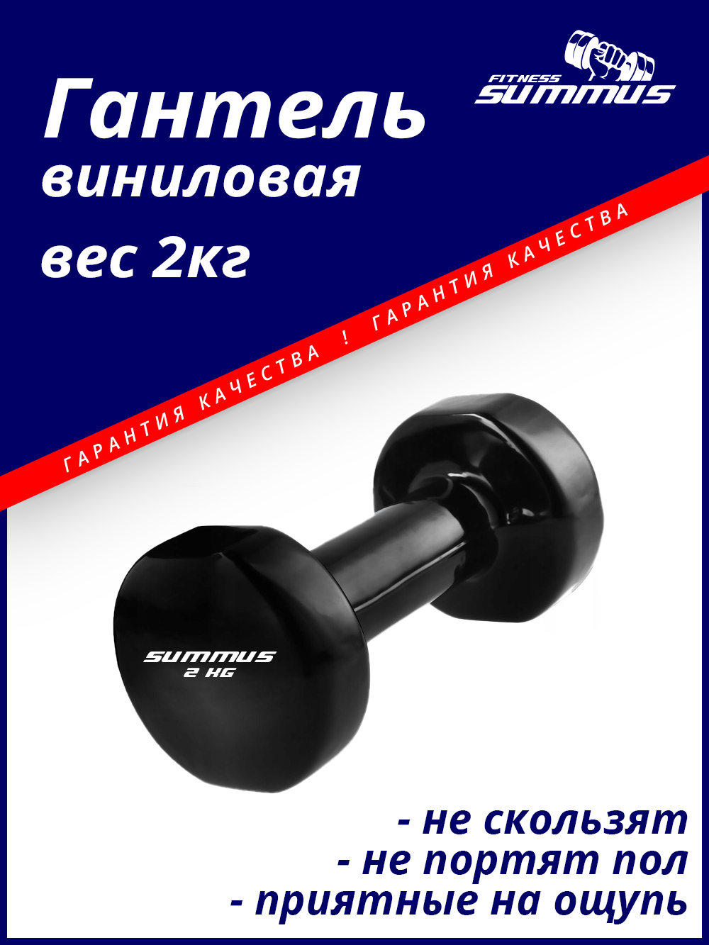 Гантели Summus винил/чугун, 1 шт. по 2 кг, черный цвет