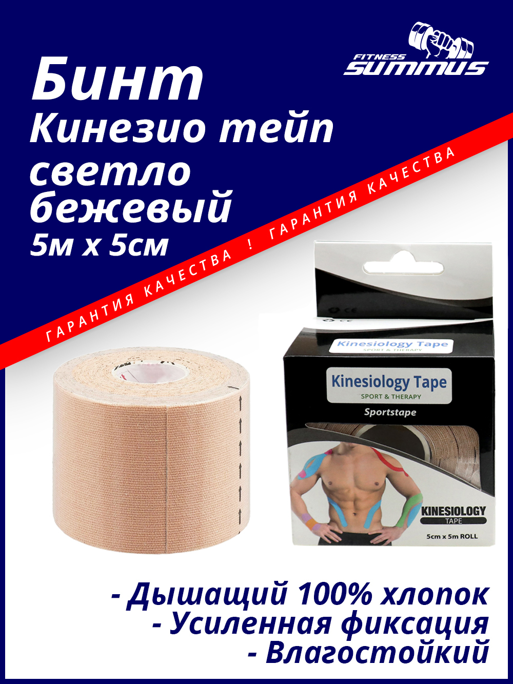 Кинезиотейп Summus 4930-383 5см Х 5 м, светло-бежевый