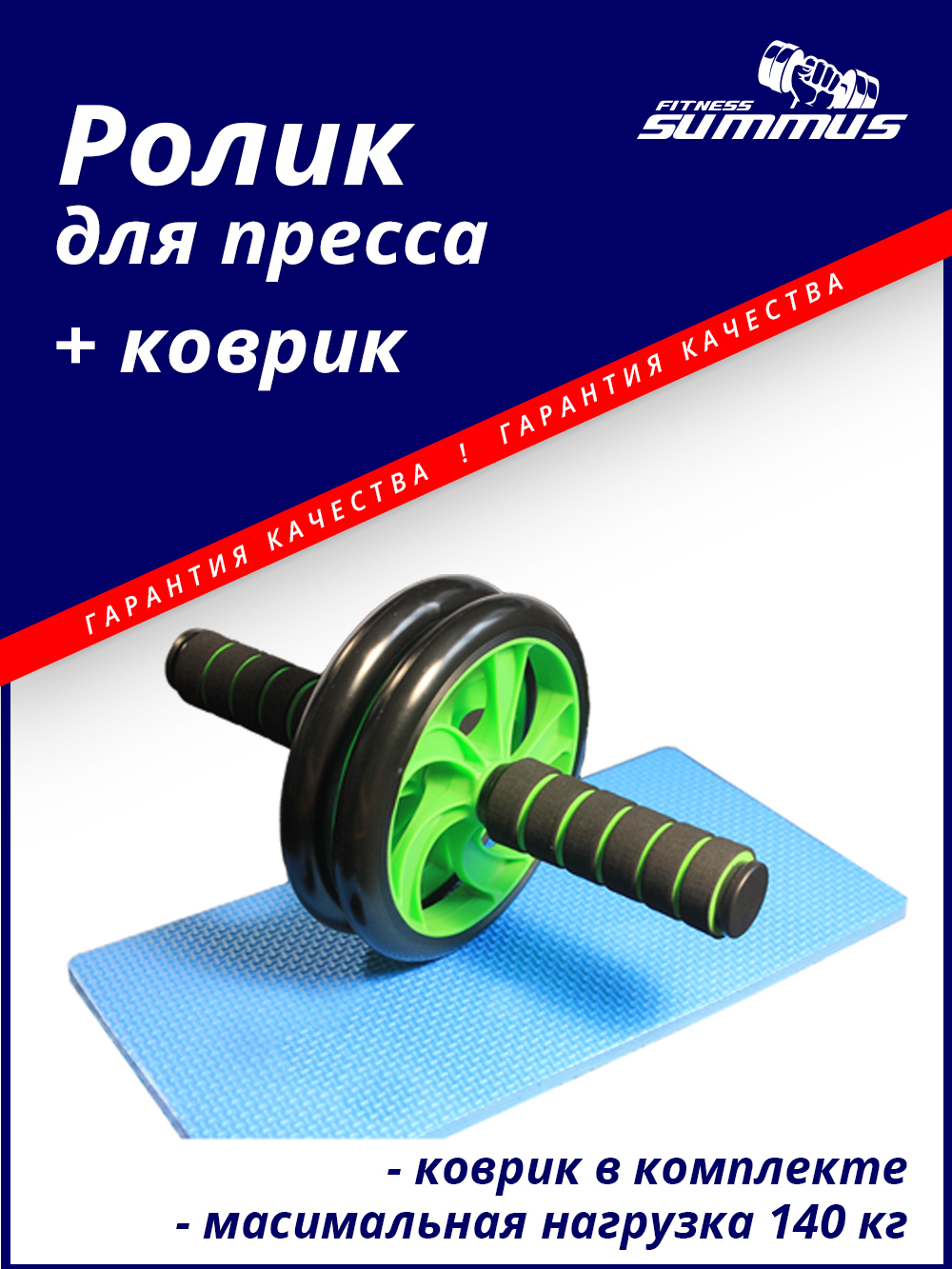 Ролик для пресса Summus гимнастический с двойным колесом и ковриком, арт. 600-013