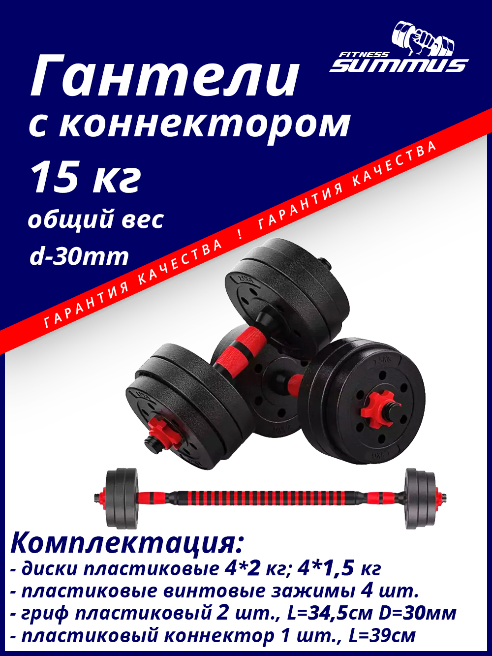Гантели Summus с коннектором, 2 шт. по 7.5 кг, красный, черный цвет