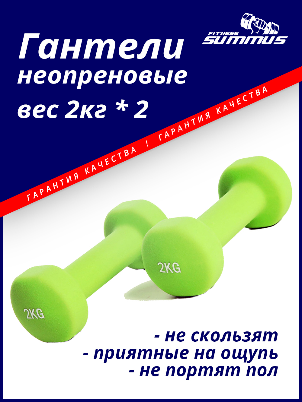 Гантель Summus неопреновая, 2 шт. по 2 кг, зеленый цвет