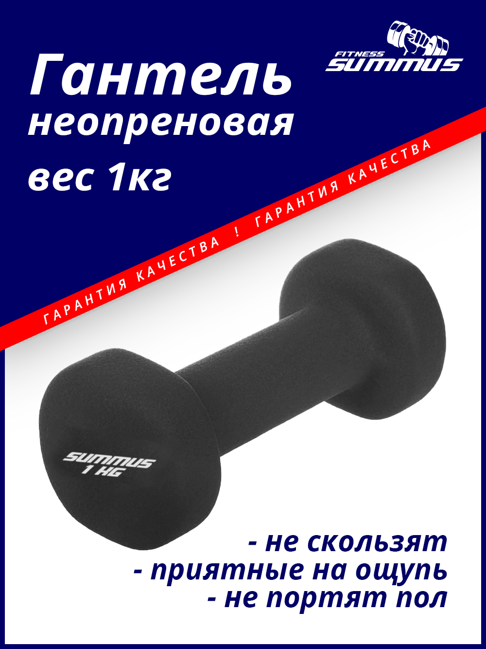 Гантели Summus неопреновые, 1 шт. по 1 кг, черный цвет