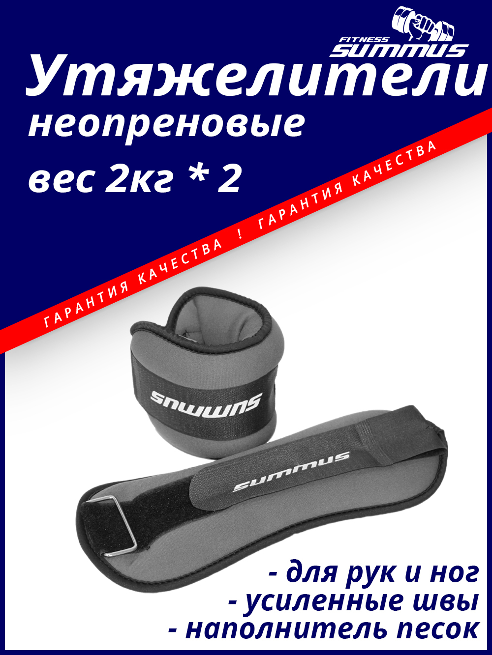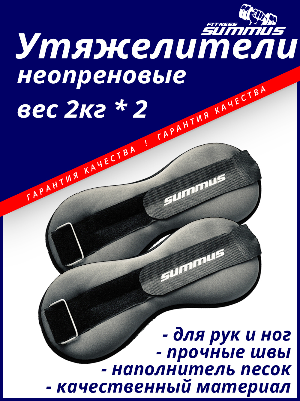 Утяжелители, Утяжелитель для йоги Summus для рук и ног 2 х 2кг, черный, серый