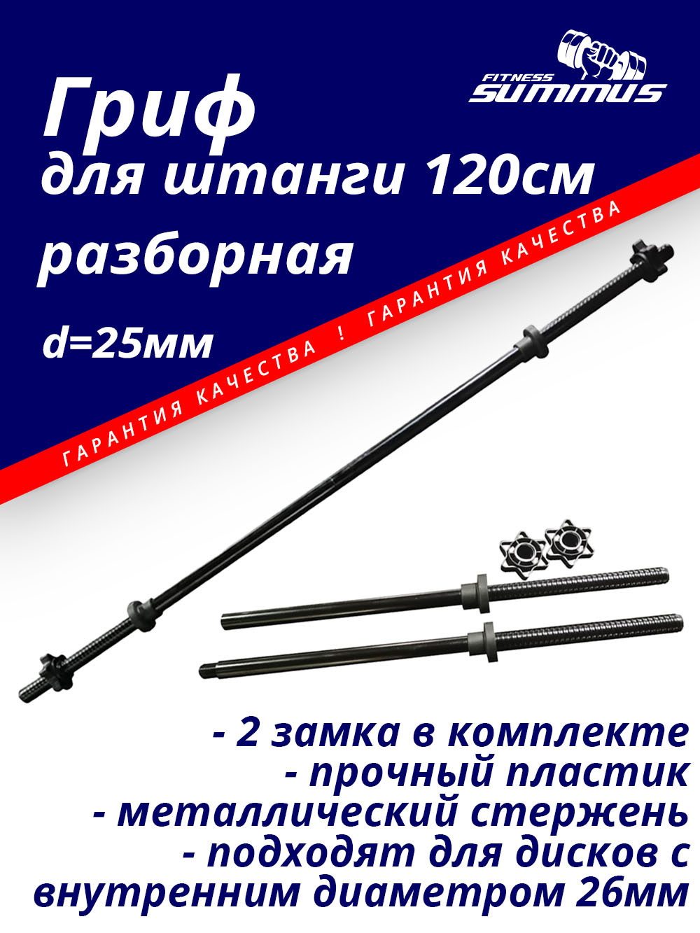 Гриф для штанги разборный 120см, d-25мм, арт. 4930-376