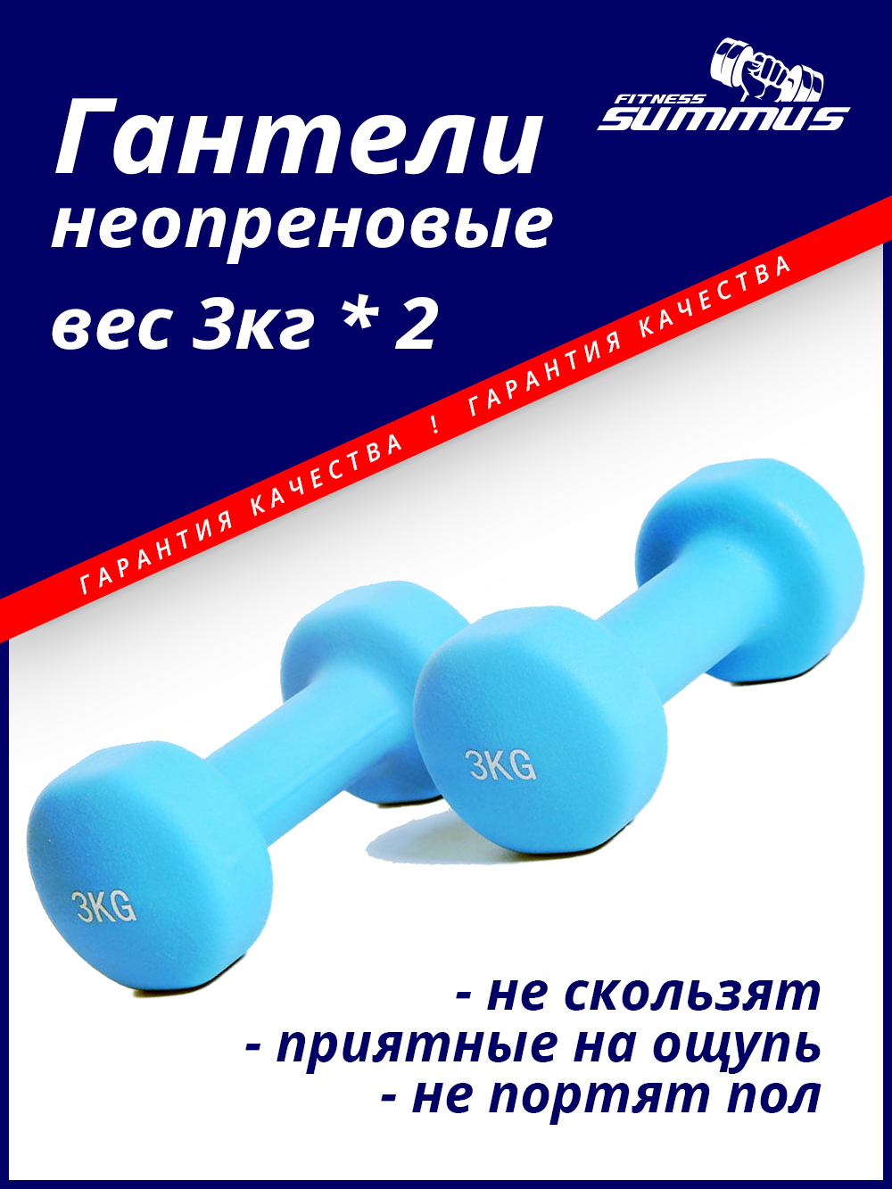 Гантель Summus неопреновая, 2 шт. по 3 кг, голубой цвет