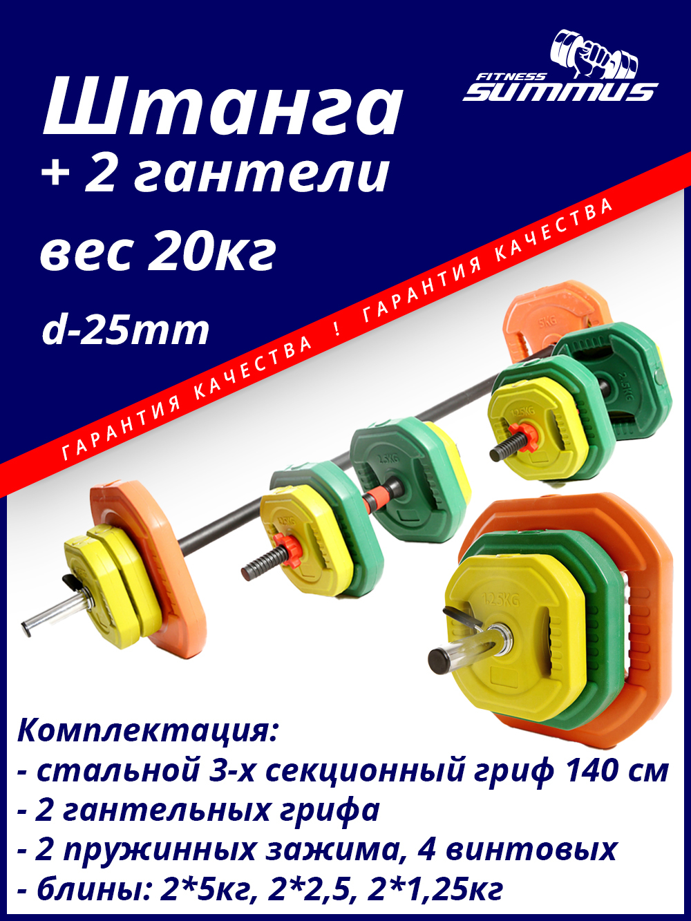 Штанга разборная для Body Pump с гантелями Summus, 20 кг, гриф 140 см, d-25мм, арт. 500-139
