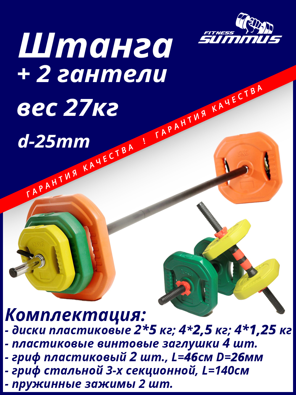 Штанга разборная для Body Pump с гантелями Summus, 25 кг, гриф 140 см, d-25мм, арт. 500-139-1