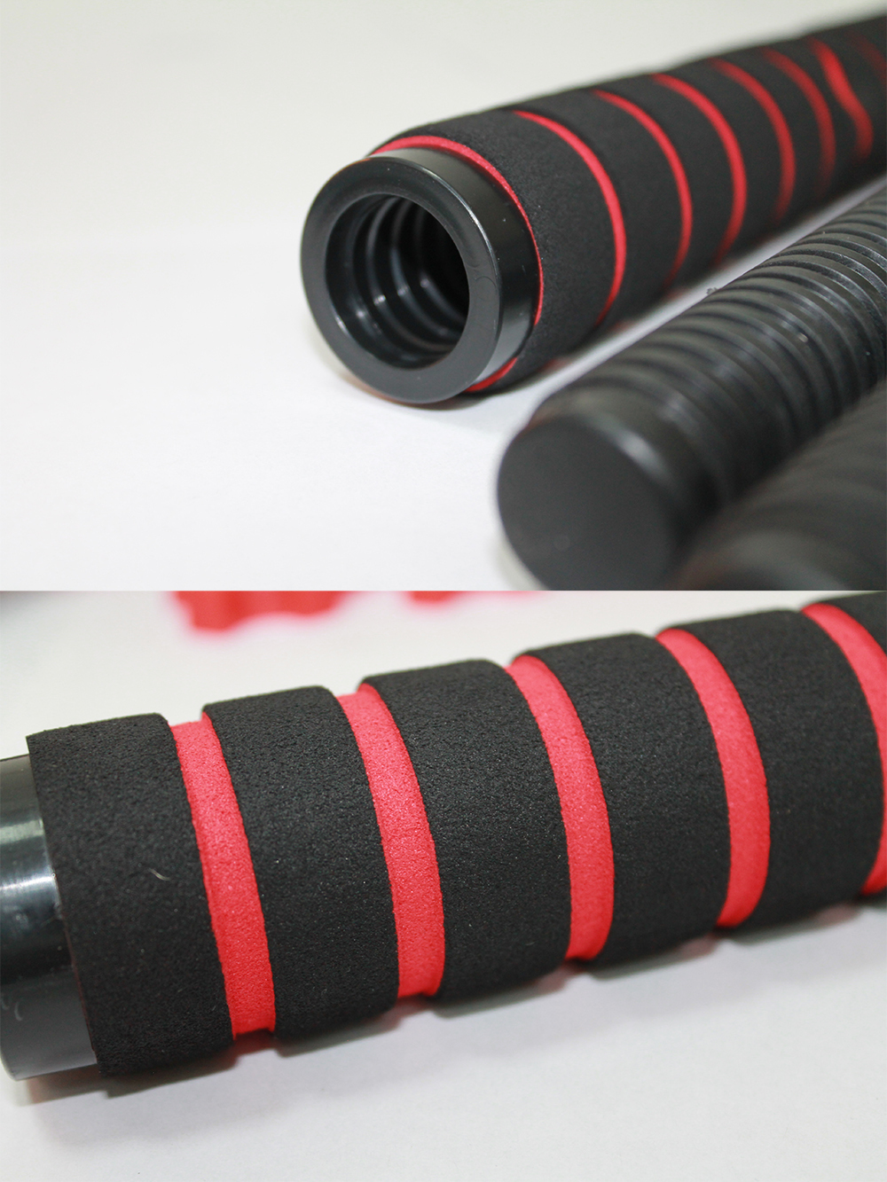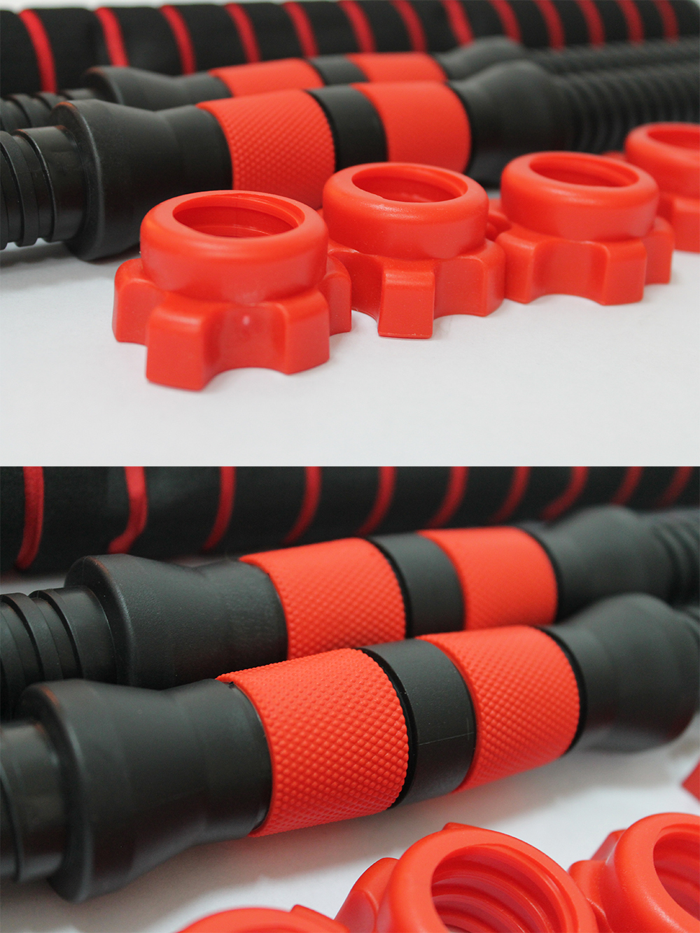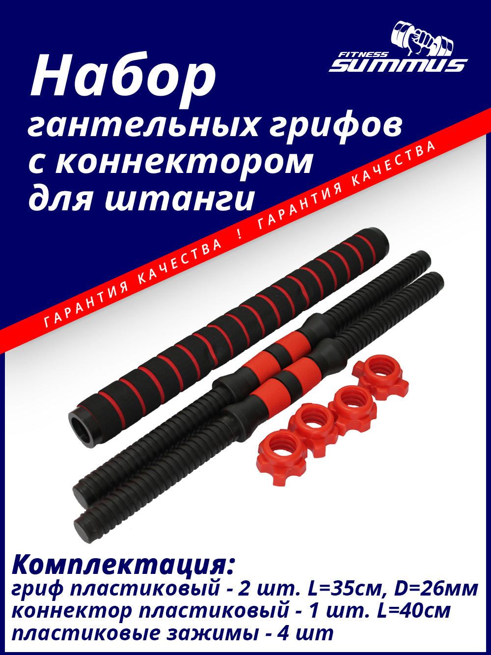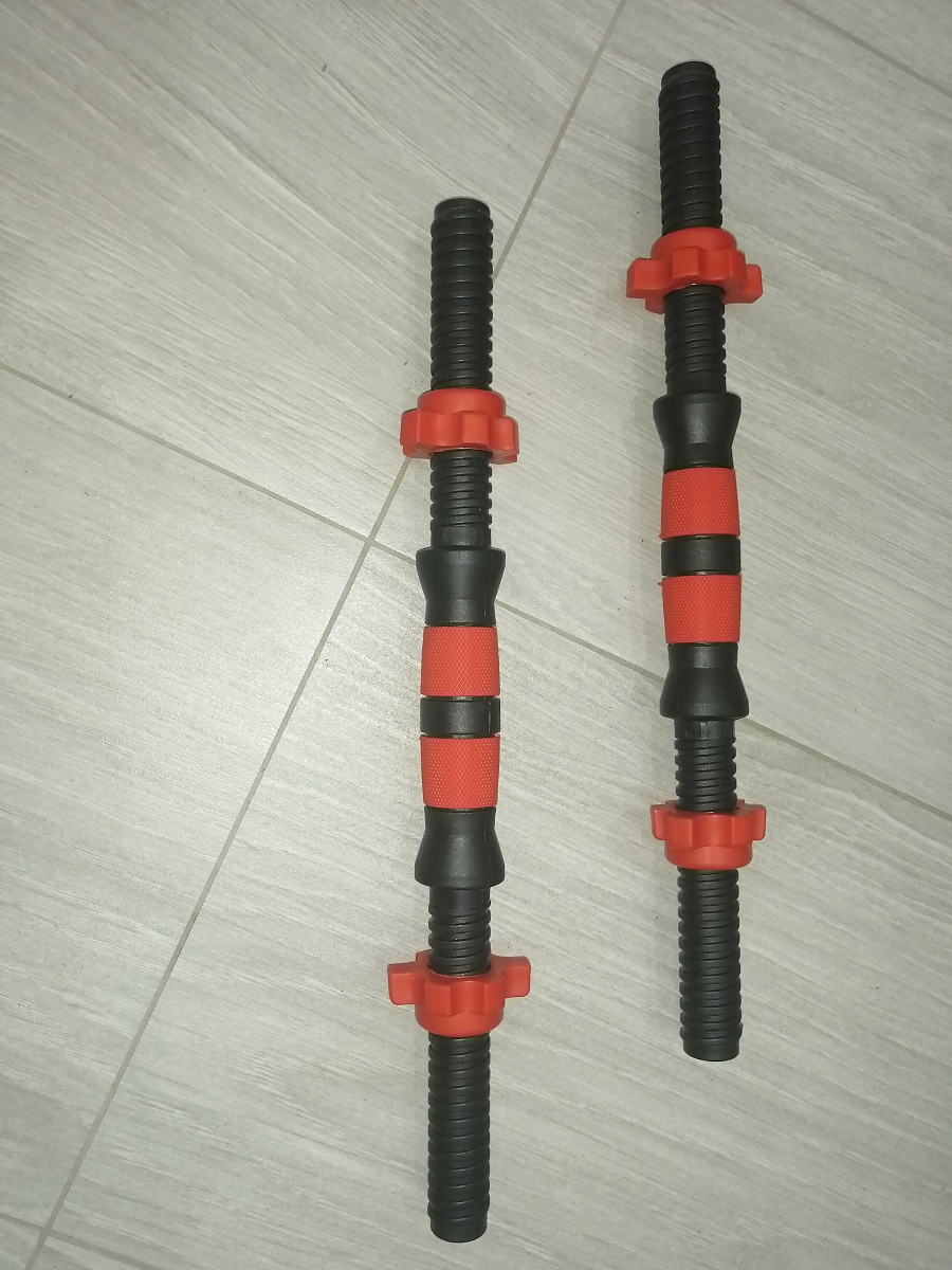 Набор пластиковых гантельных грифов 35 см 2 шт (красный) с зажимами + коннектор для штанги