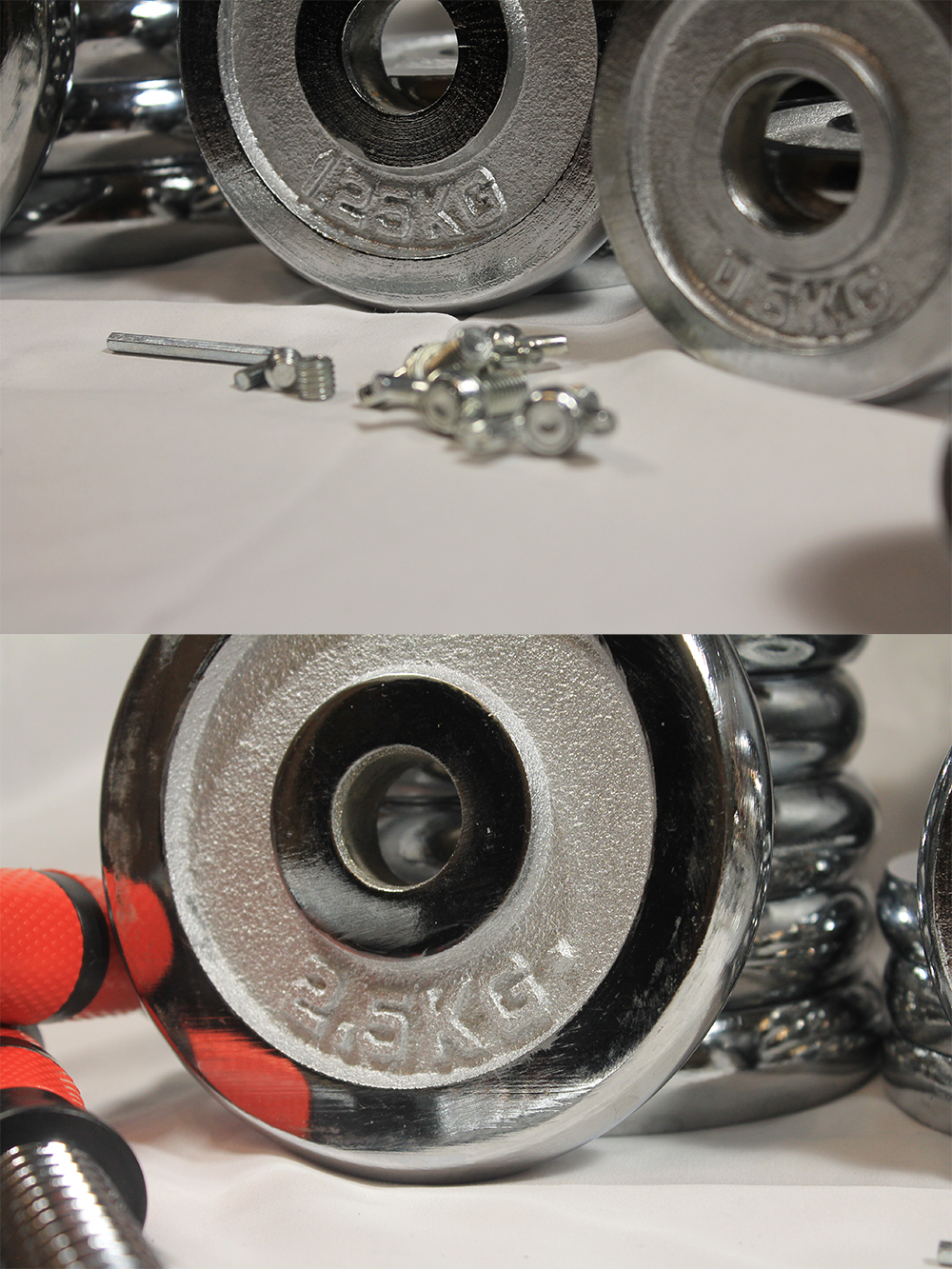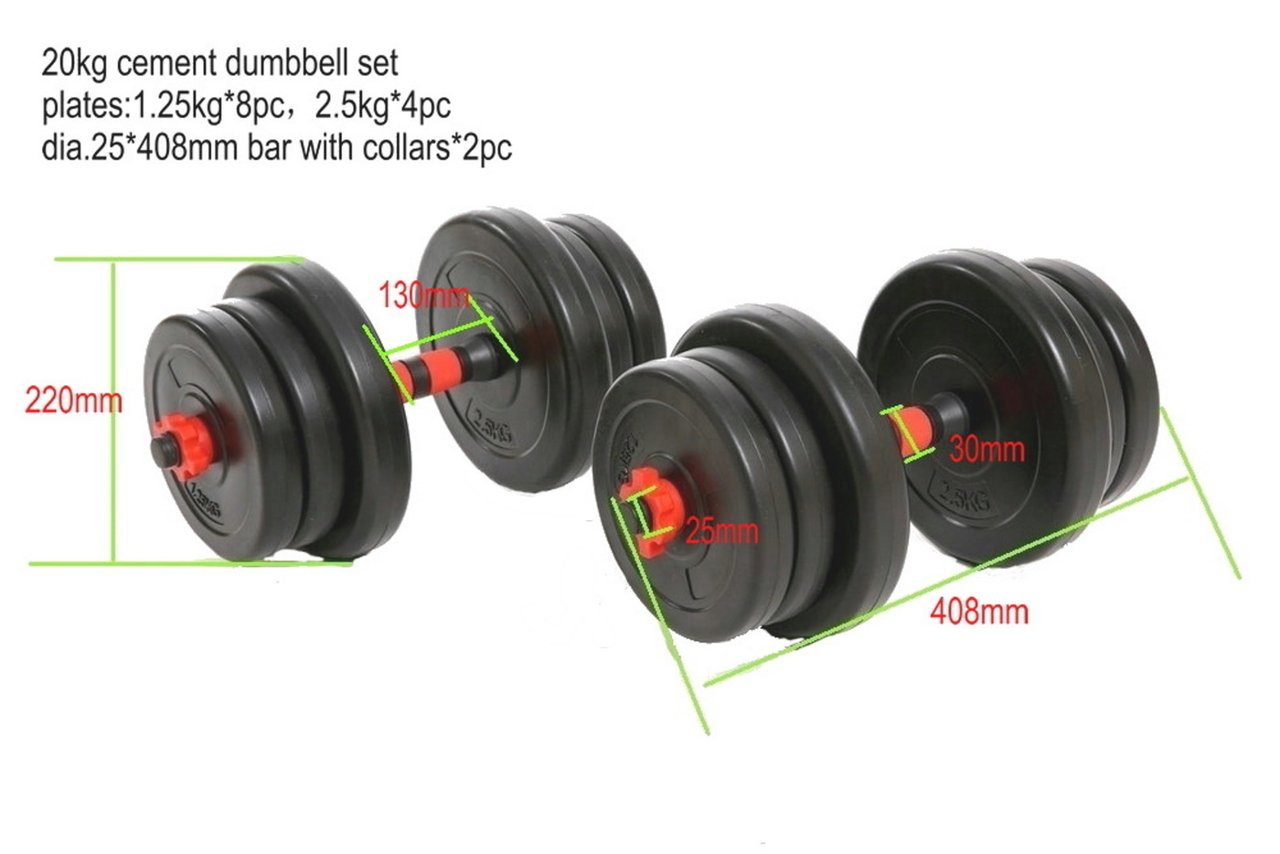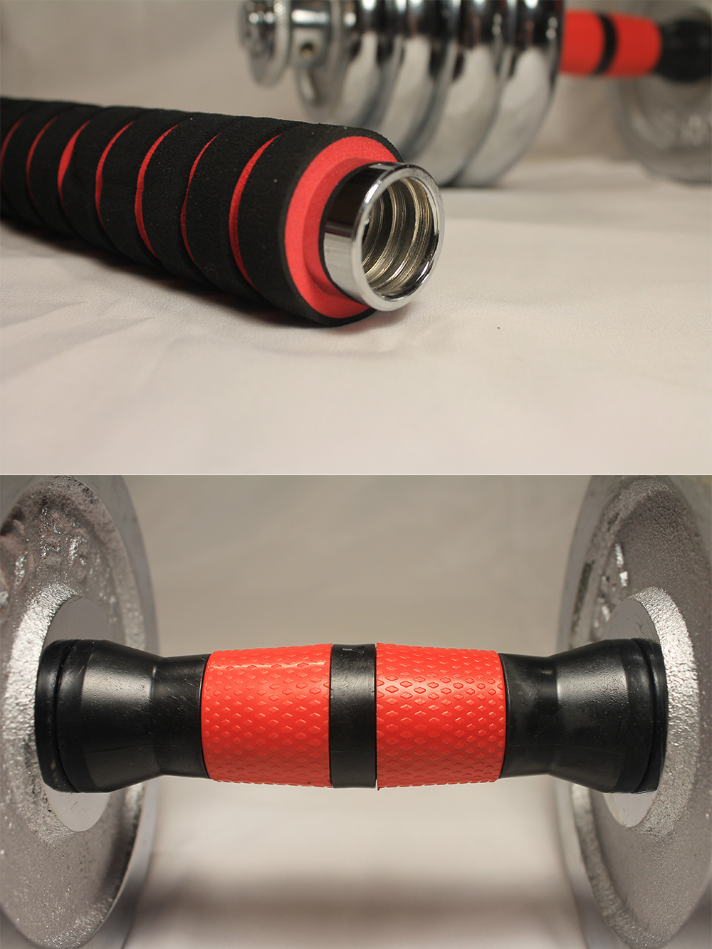 Набор пластиковых гантельных грифов 35 см 2 шт (красный) с зажимами + коннектор для штанги