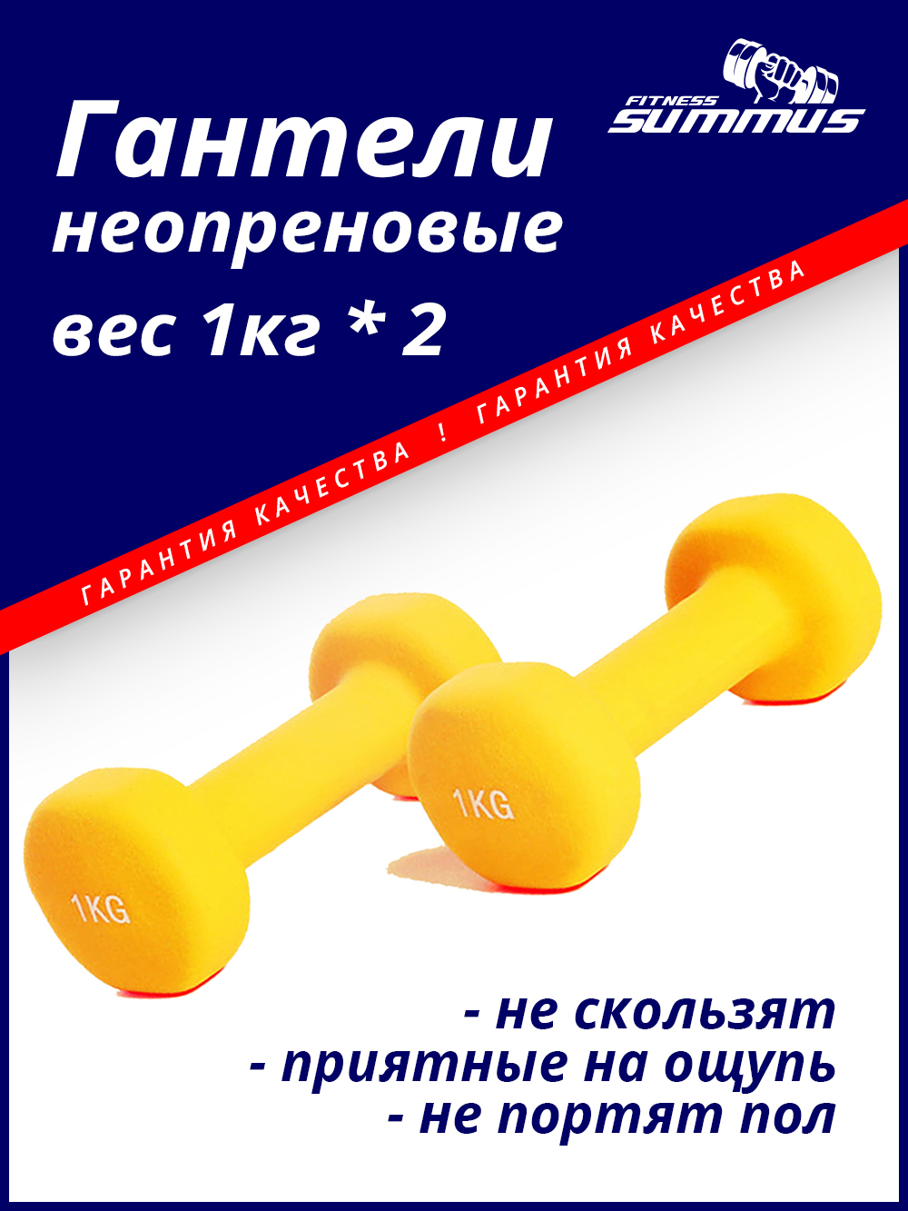 Гантель Summus неопреновая, 2 шт. по 1 кг, желтый цвет